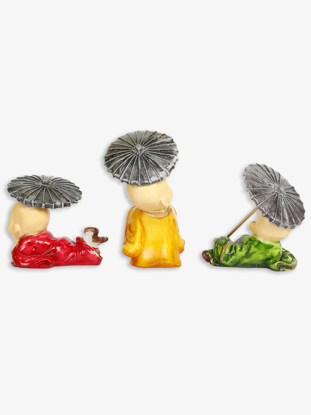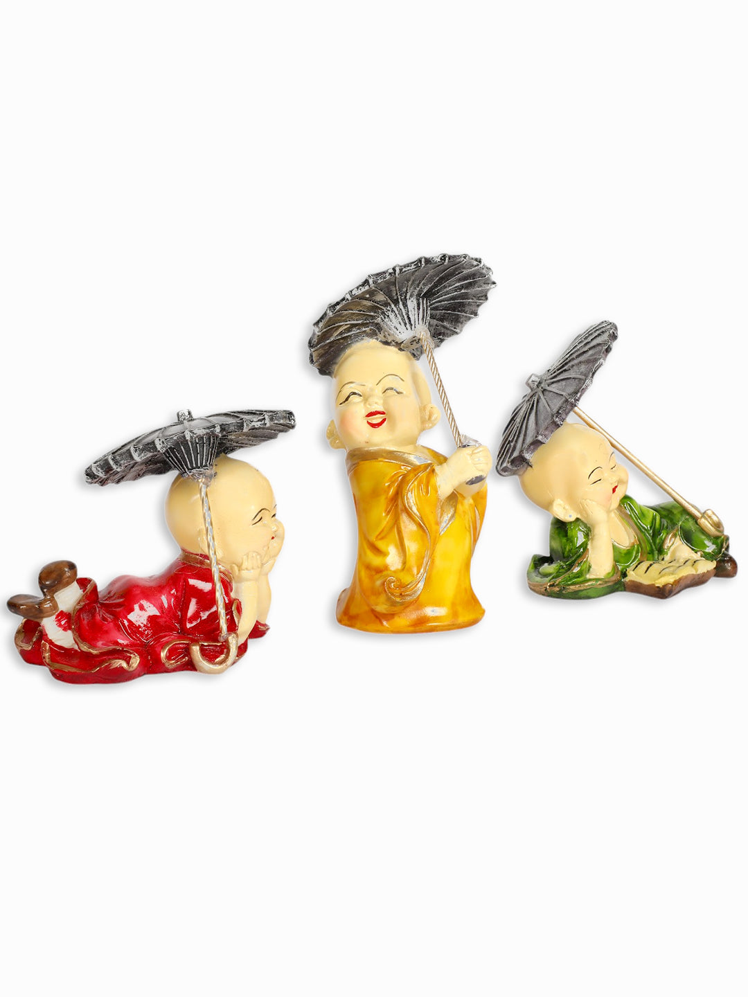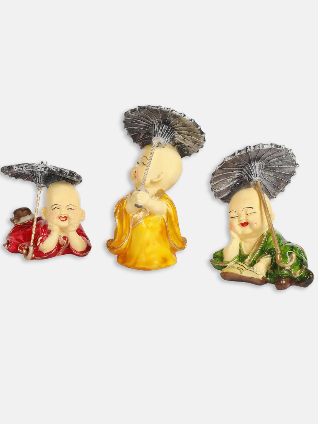 Elevate Your Space with Premium Resin Happy Buddha Monks with Umbrella Set