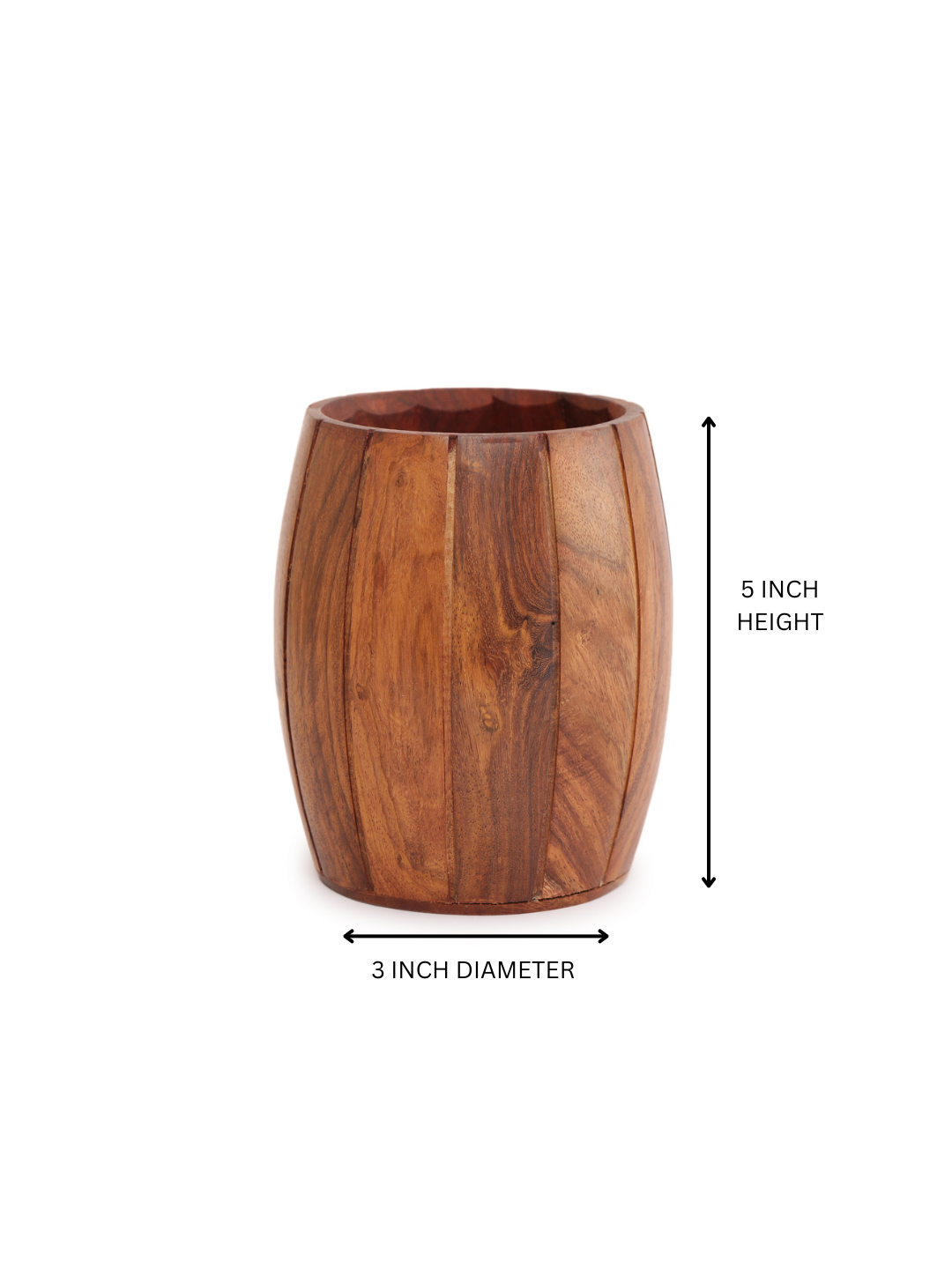 Keep your pens, pencils, and other stationery neatly organized and within easy reach with our Handcrafted Wooden Pen and Pencil Holder. Each holder is lovingly carved from natural wood, showcasing the unique and beautiful grain patterns of the timber. This desk accessory adds a touch of organic warmth and rustic charm to your workspace, whether it's a home office, study, or professional setting.