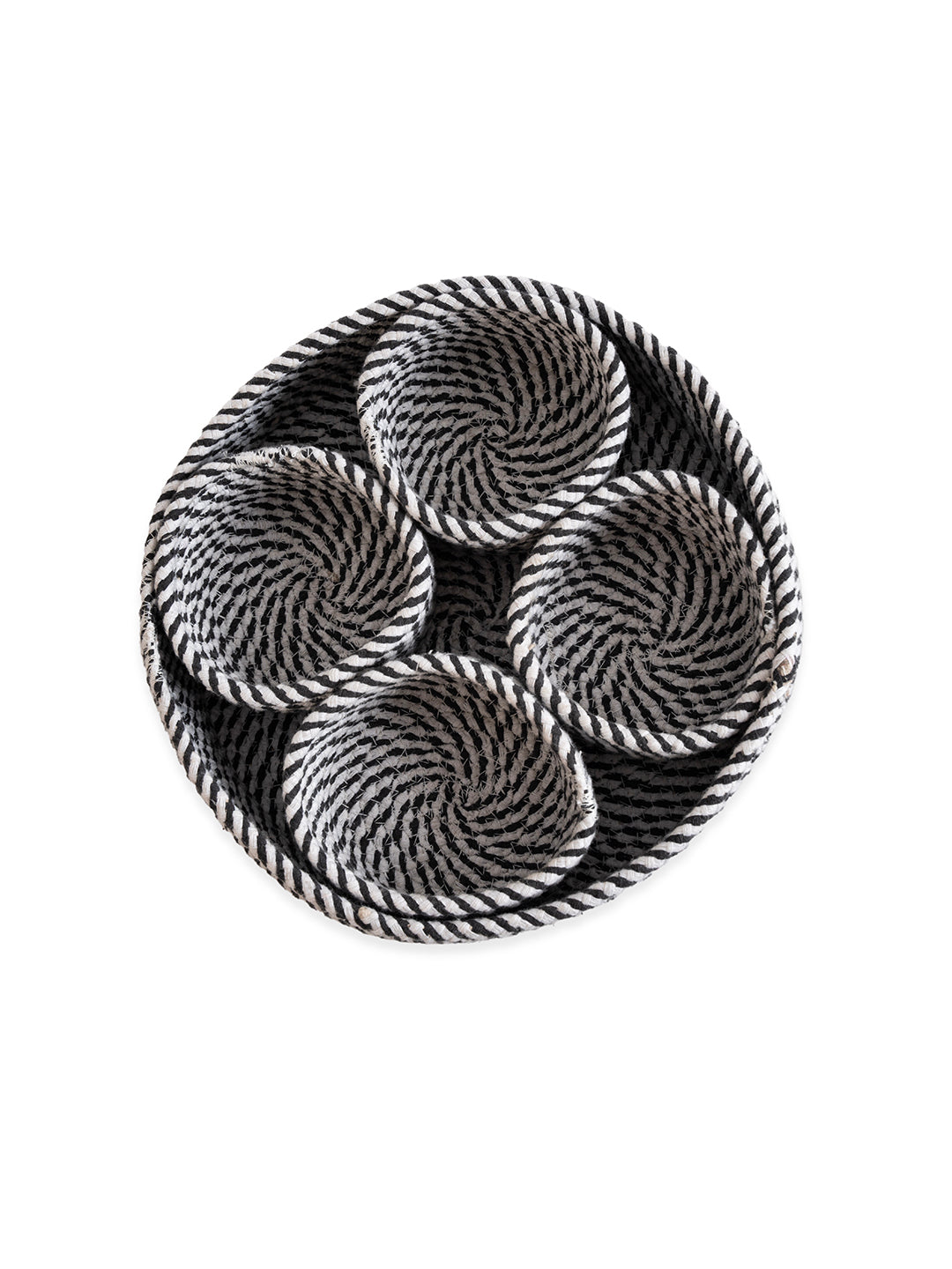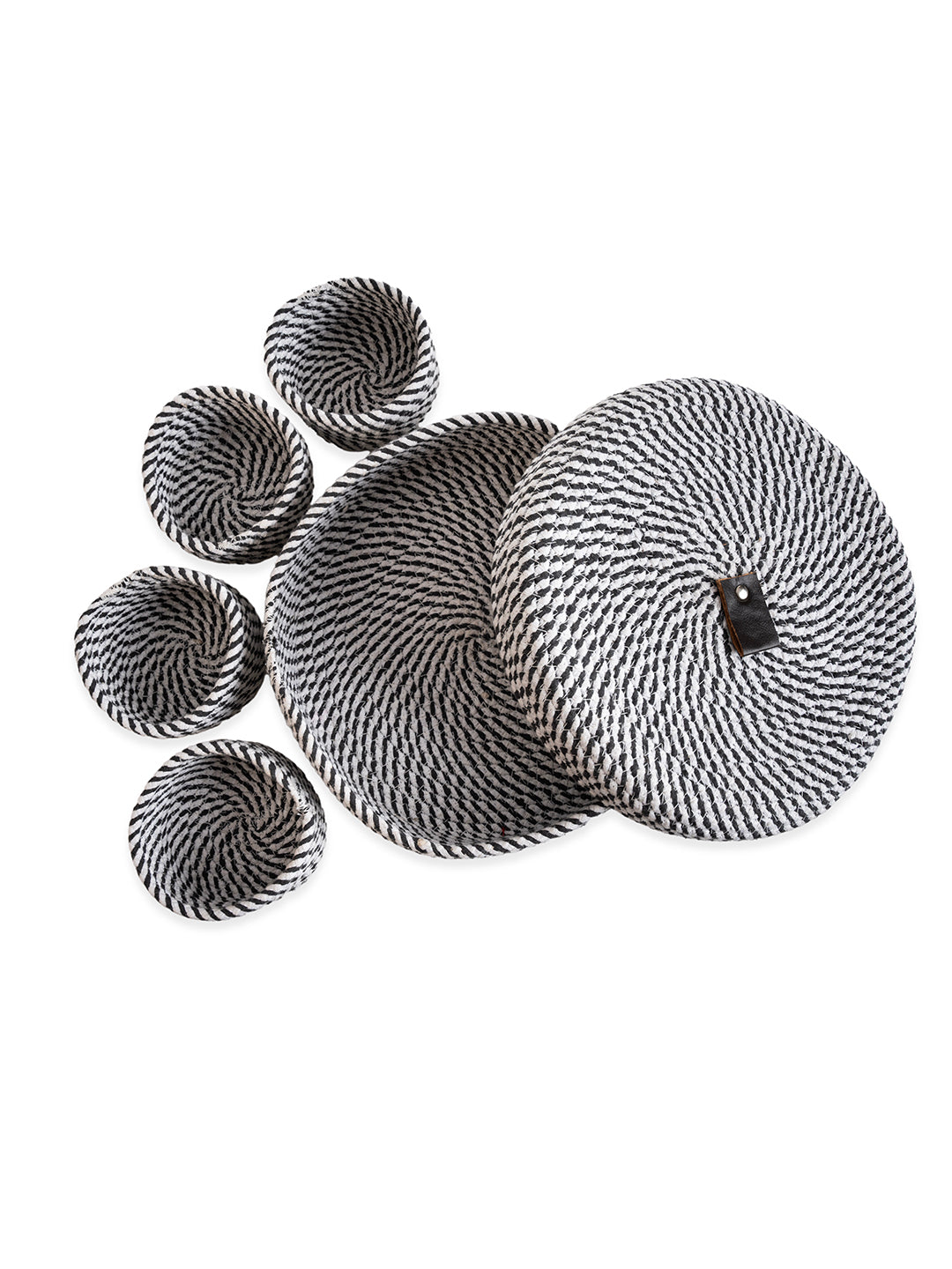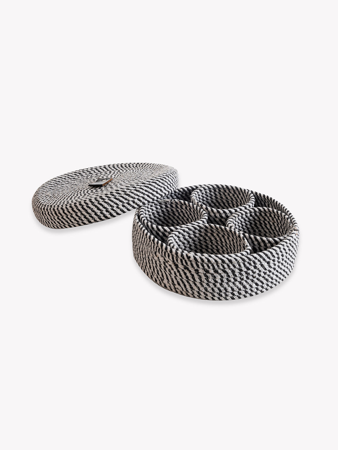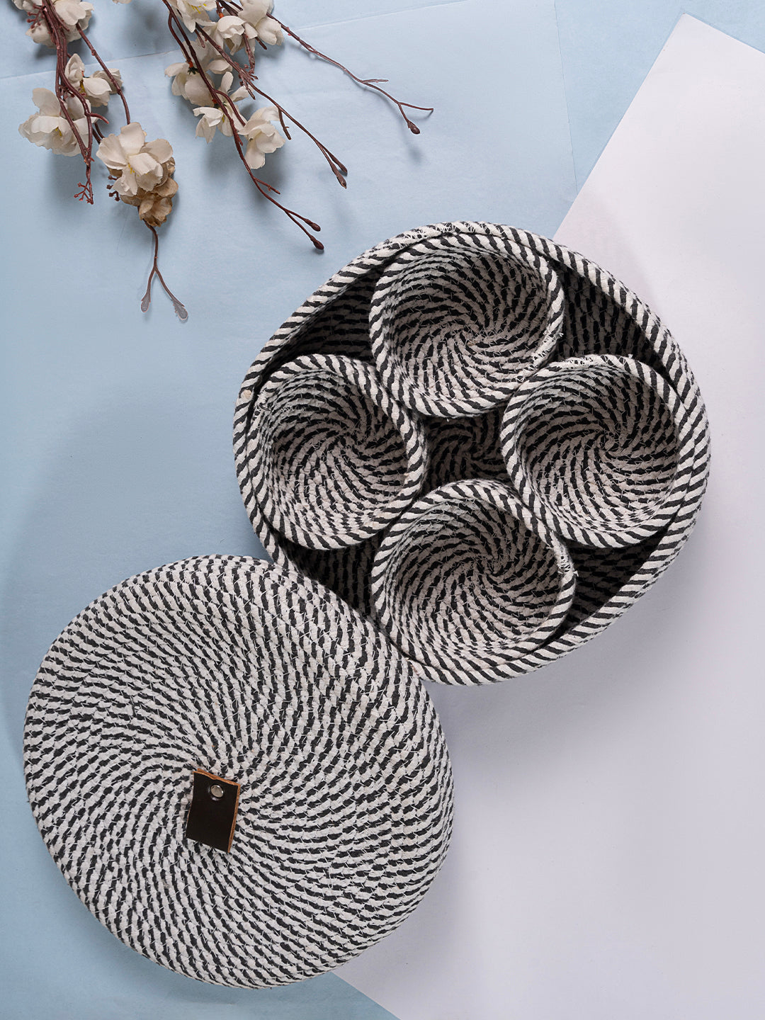 Introducing the Basket Set, a versatile and practical solution for home and kitchen storage. This set of three baskets is designed to enhance your organization while adding a touch of elegance to your space. Crafted in a combination of white and natural tones, these baskets effortlessly complement any decor style. Made from eco-friendly materials, these baskets are not only functional but also environmentally conscious. The handwoven jute and cotton construction adds a unique and rustic touch to the baskets, making them stand out from traditional storage options. With a sturdy handle, these baskets can easily be transported from room to room, making them perfect for storing a variety of items such as toys, books, stationery, and more. Upgrade your storage game with the Basket Set and add a touch of style to your home.
