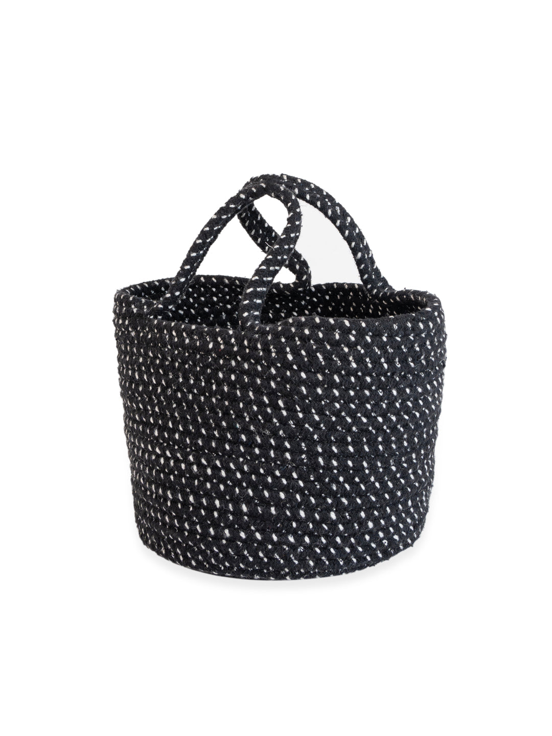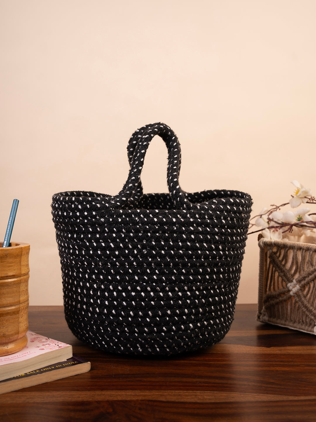 Product URL: https://homeique.com/products/multipurpose-medium-basket-to-store-small-items-daily-use-small-carry-bag-storage-basket-organizer-pooja-basket-grey-black-melange