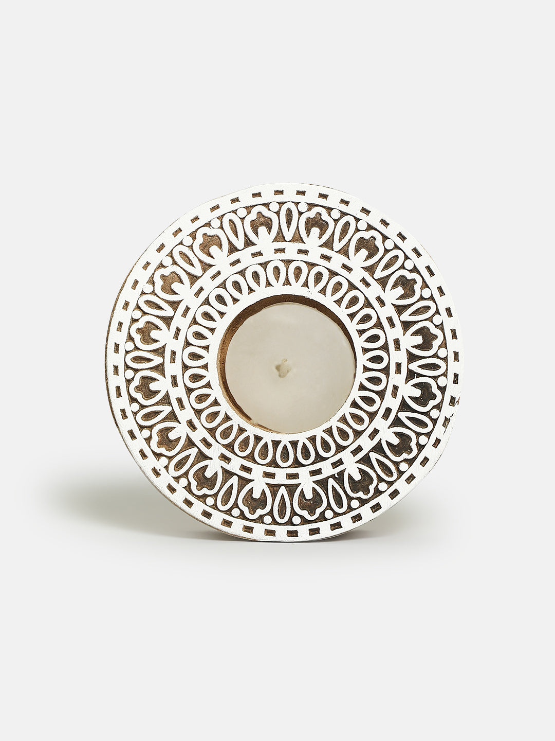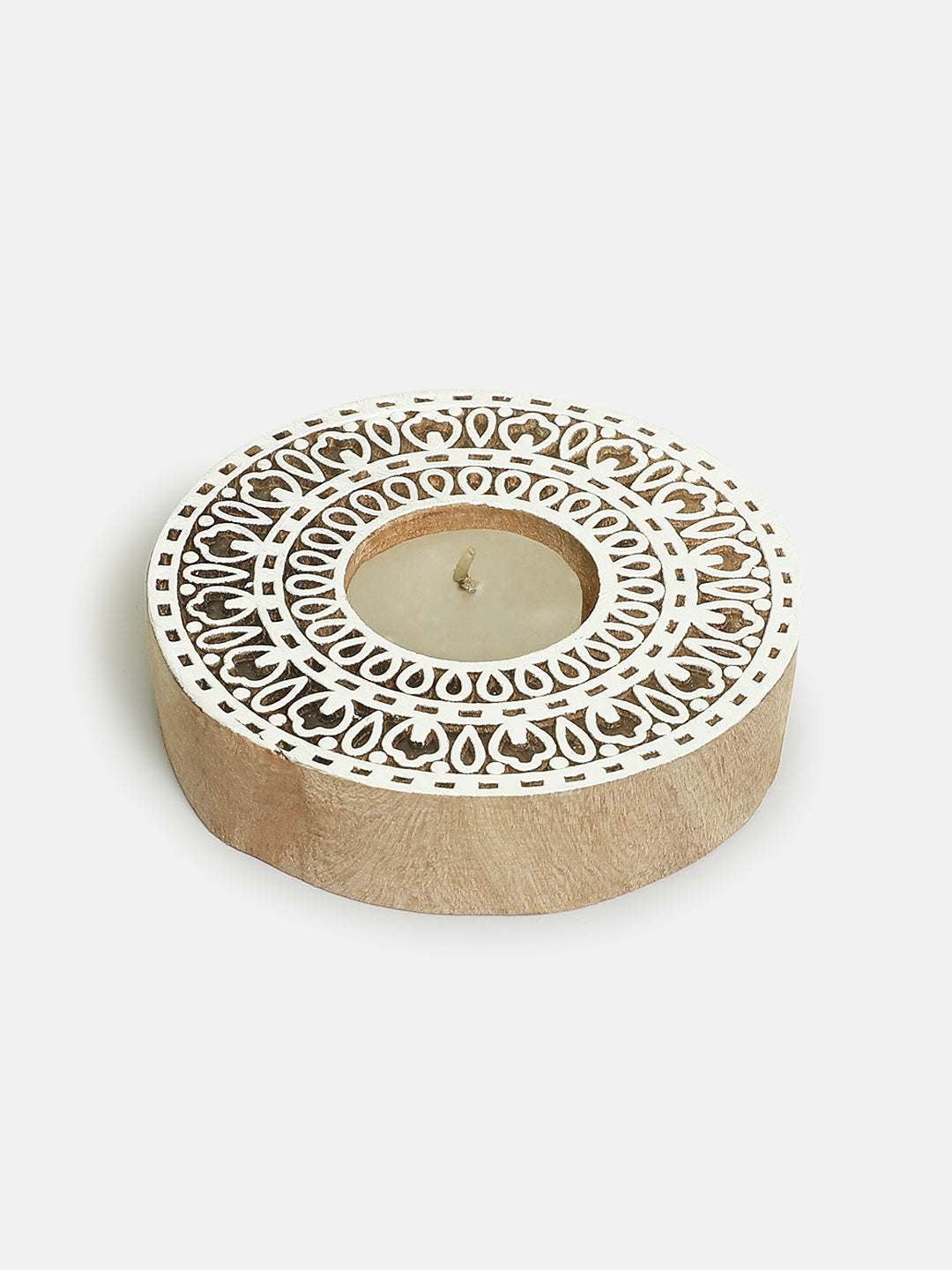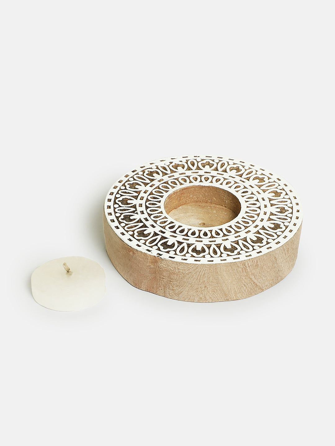 Product Title: Round Shaped Block Printing Tea Light Wooden Candle Diya Holder