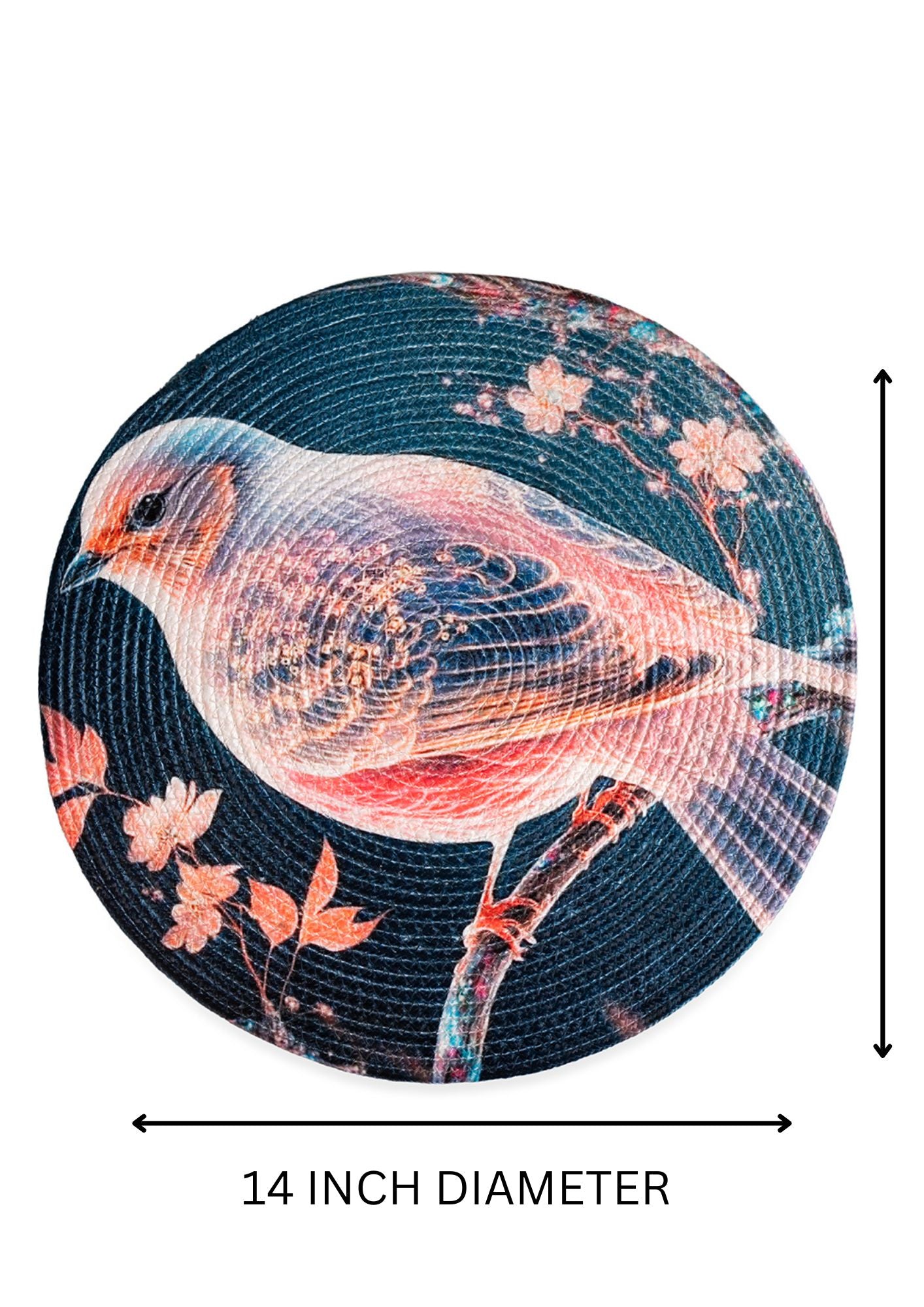 Measuring 14 inches in diameter, this mat is the perfect size for most standard dining tables. Its round shape adds a unique touch to your table setting and is perfect for both casual and formal occasions. The printed design adds a pop of color and personality to your dining experience, making it a conversation starter among your guests.