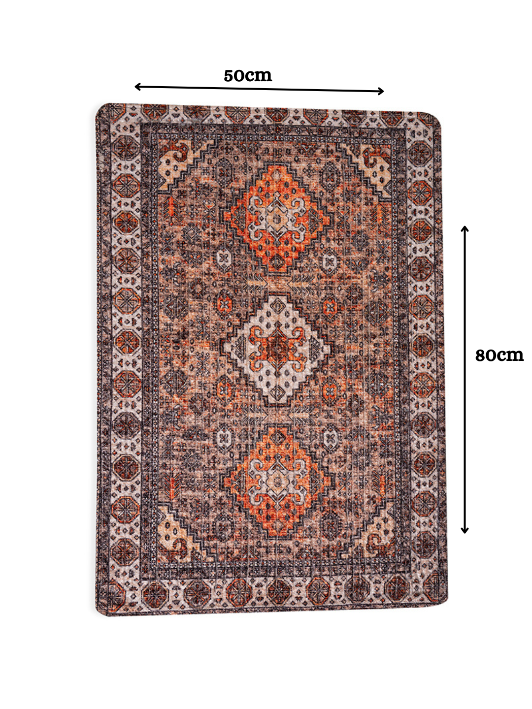 This exquisitely designed rug is a must-have for any home. Handwoven on a wooden loom in rural India, it boasts a unique vintage look that will add character to any room. Measuring 50x80 cm, it is the perfect size for a bathroom, washroom, kitchen, or any area that may experience splashes of water.
