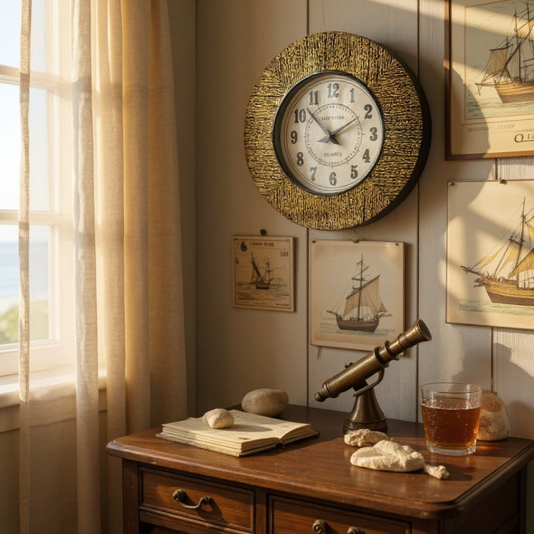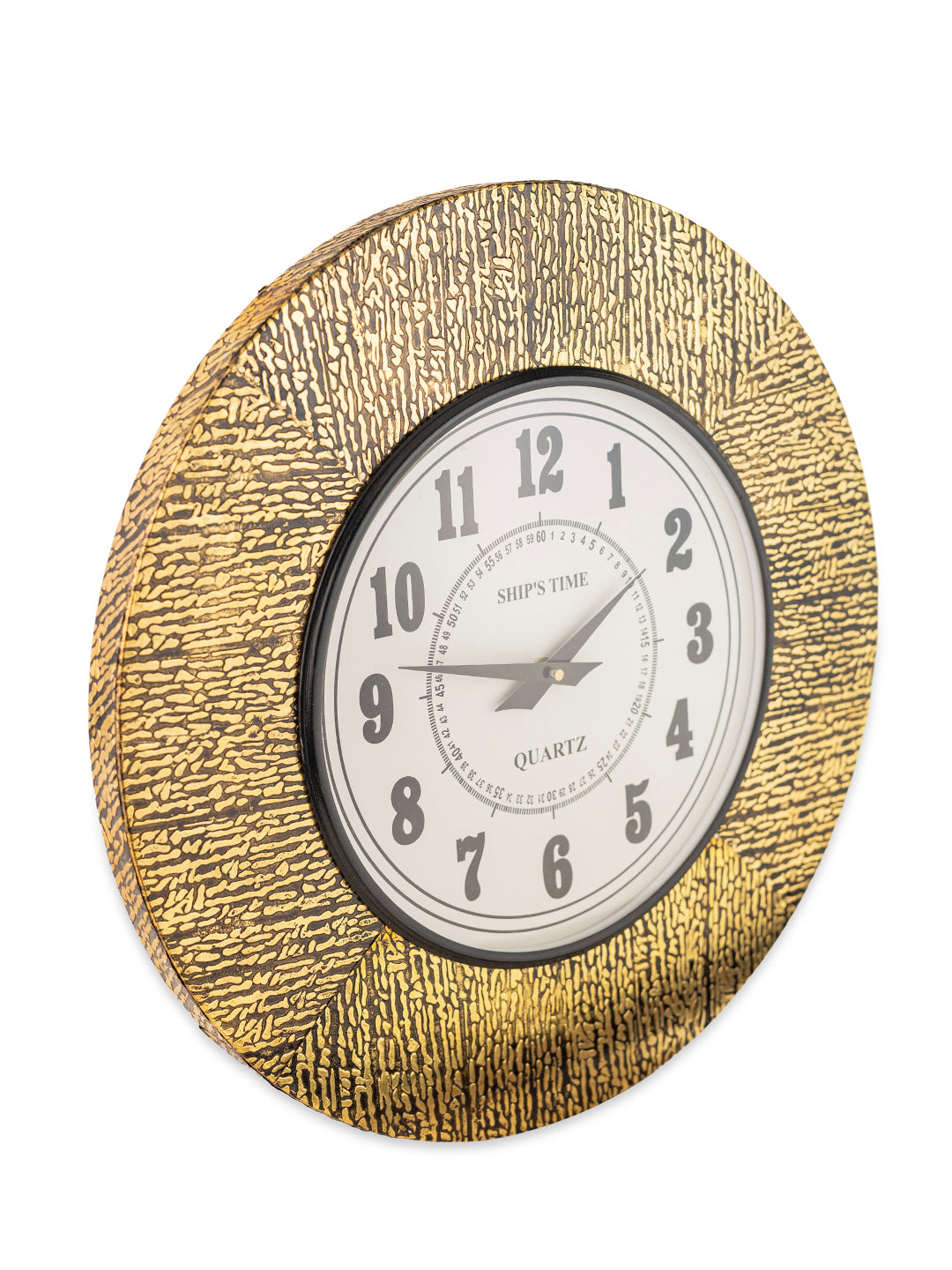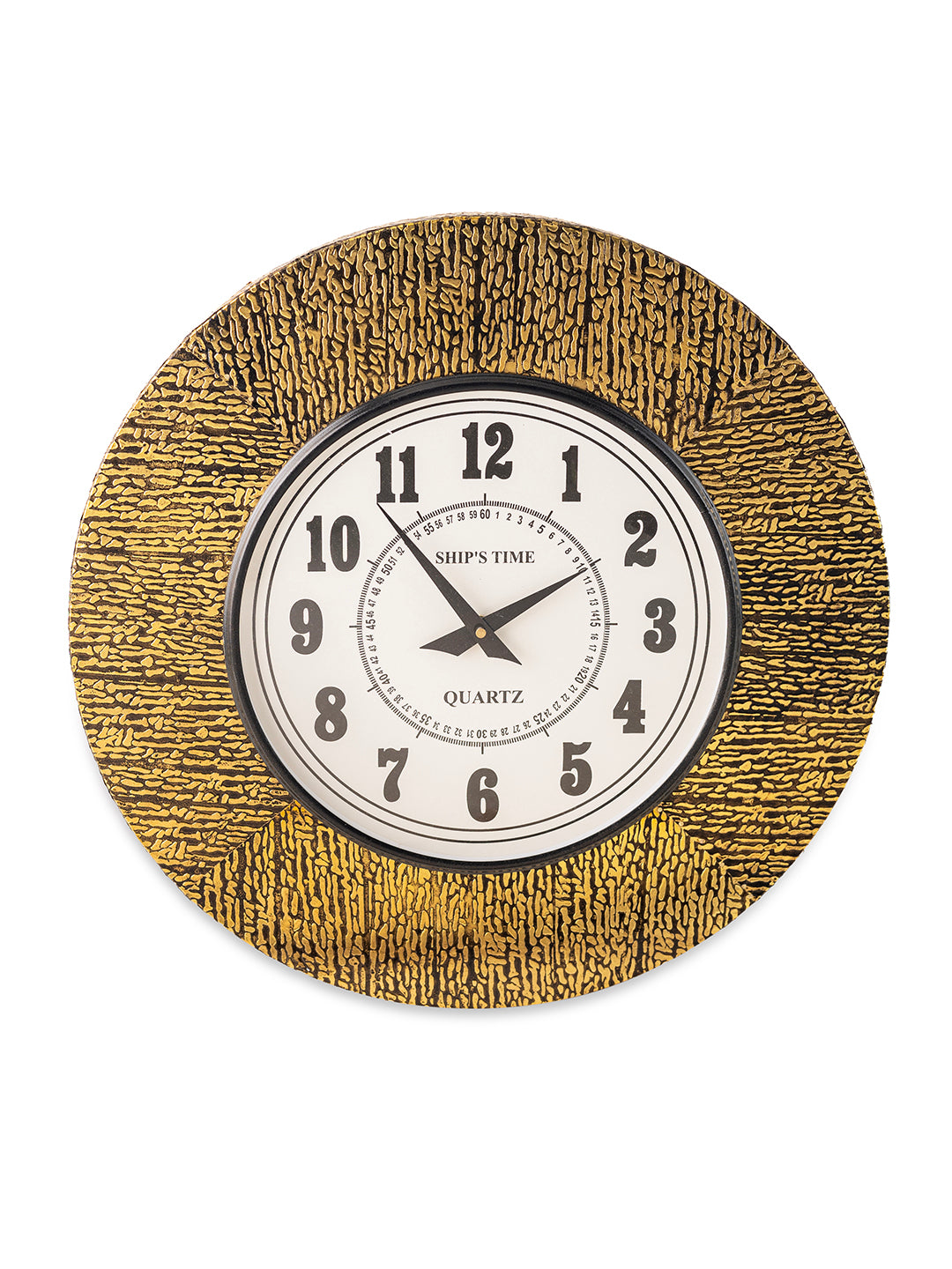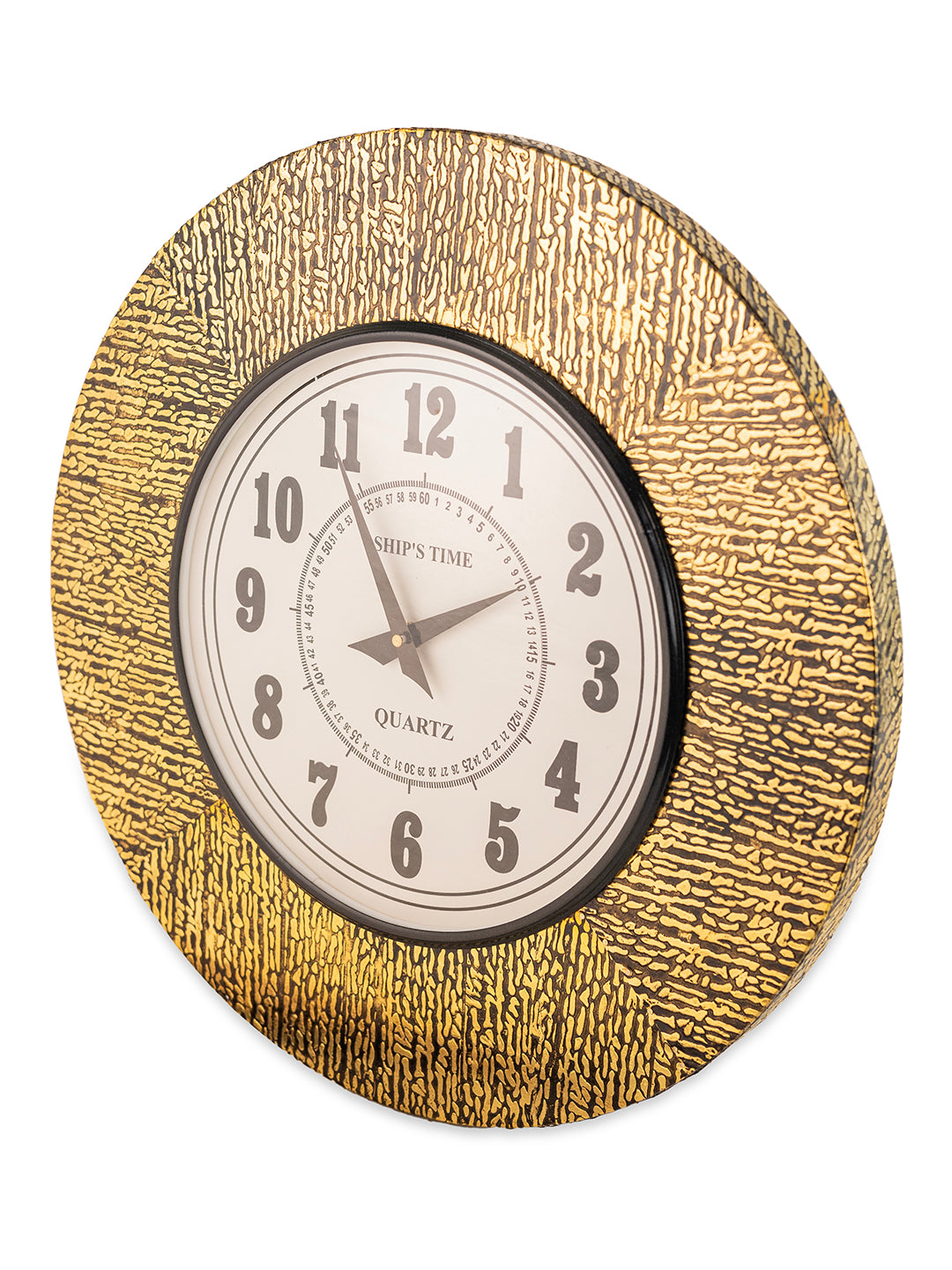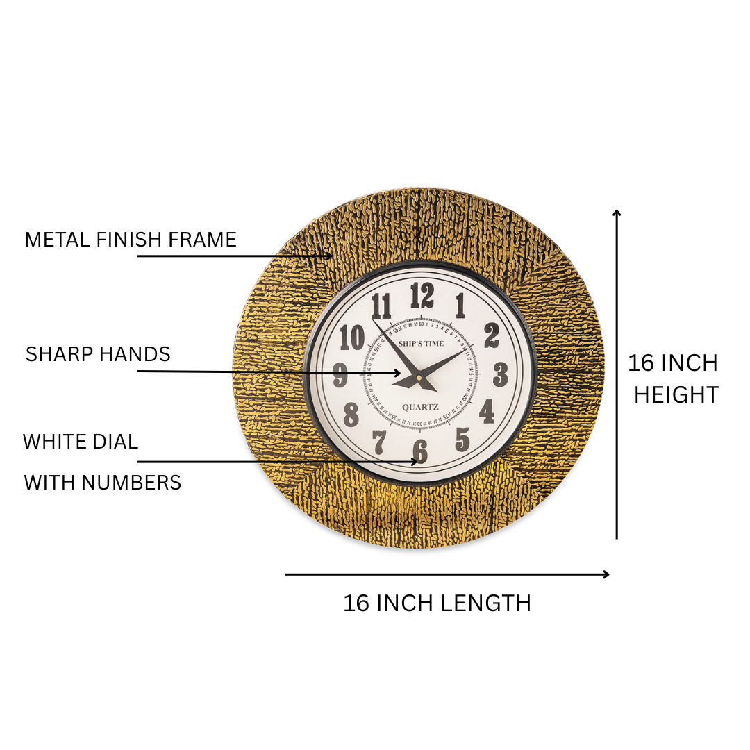 Ship's Time Textured Frame Wall Clock – Golden Black Finish with Bold Numbers