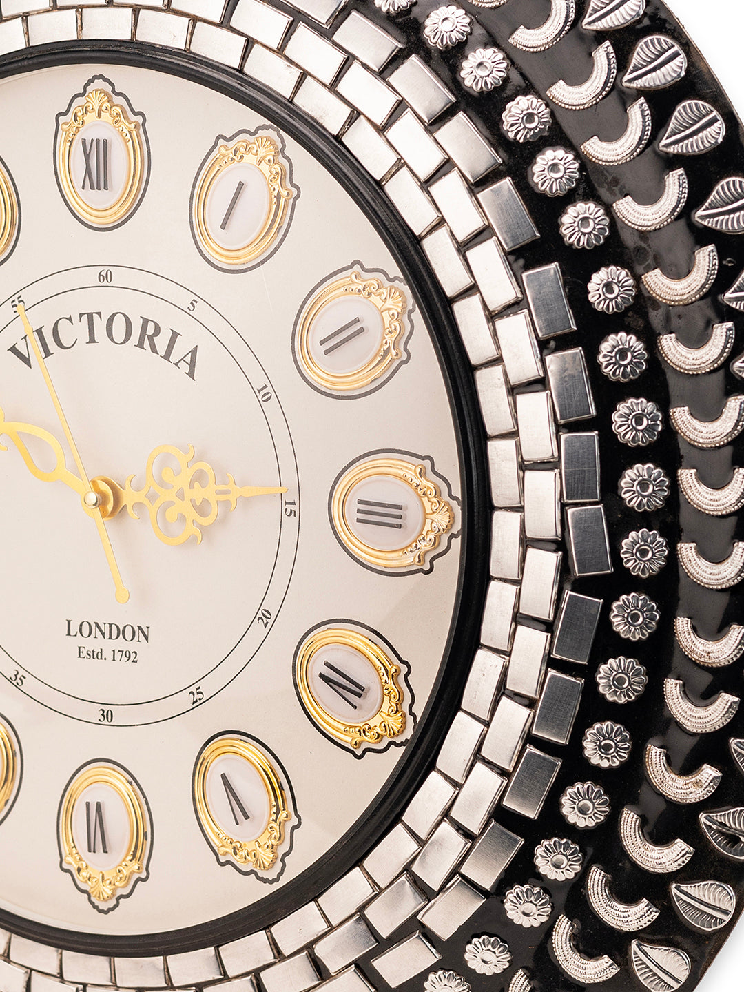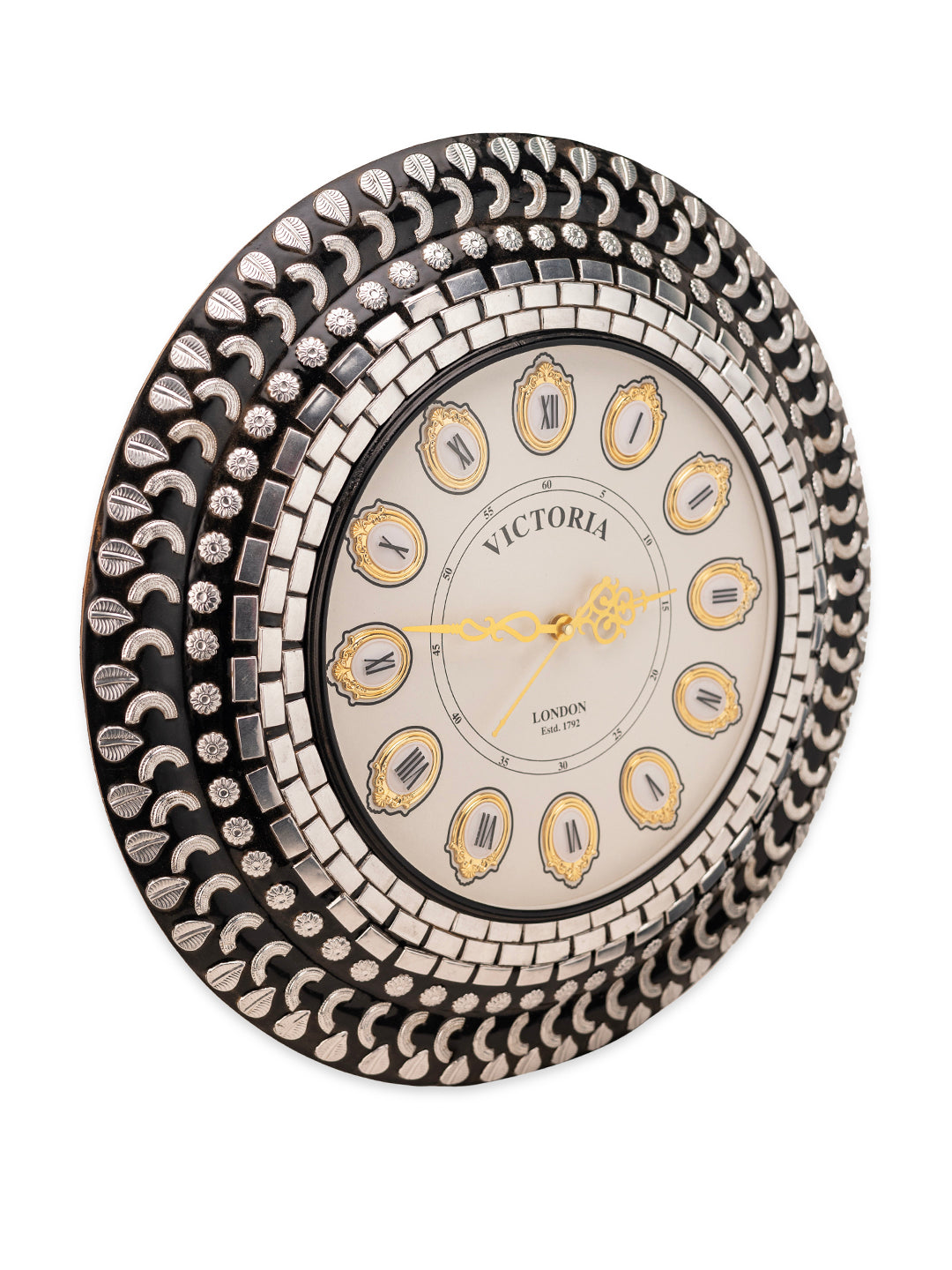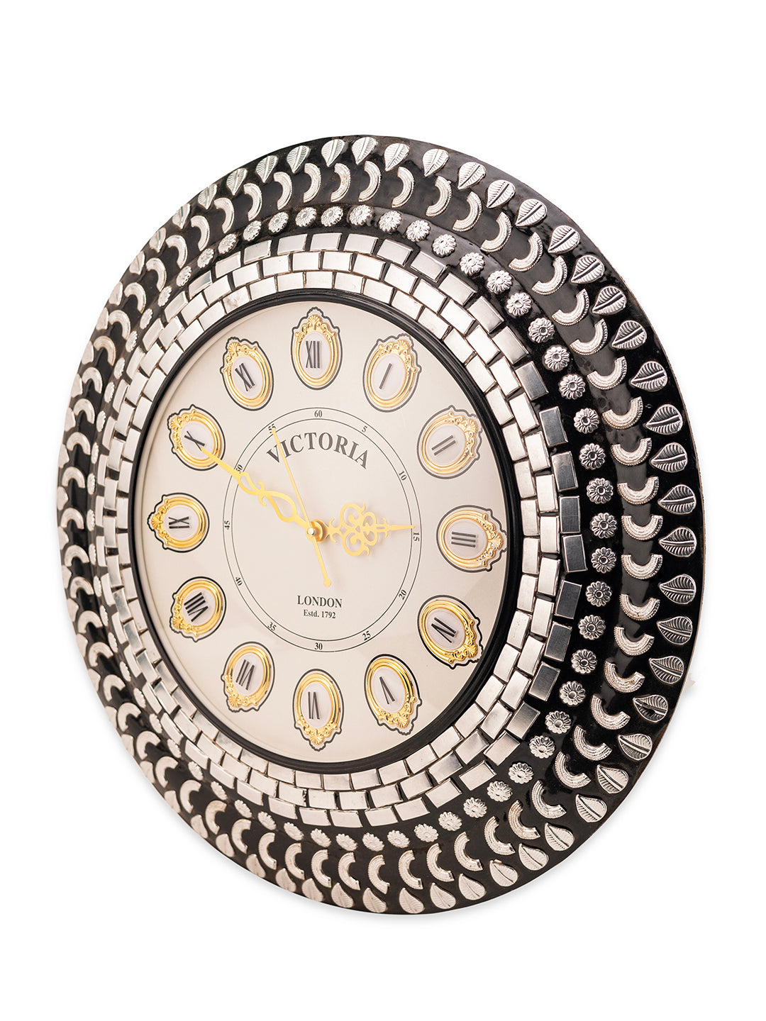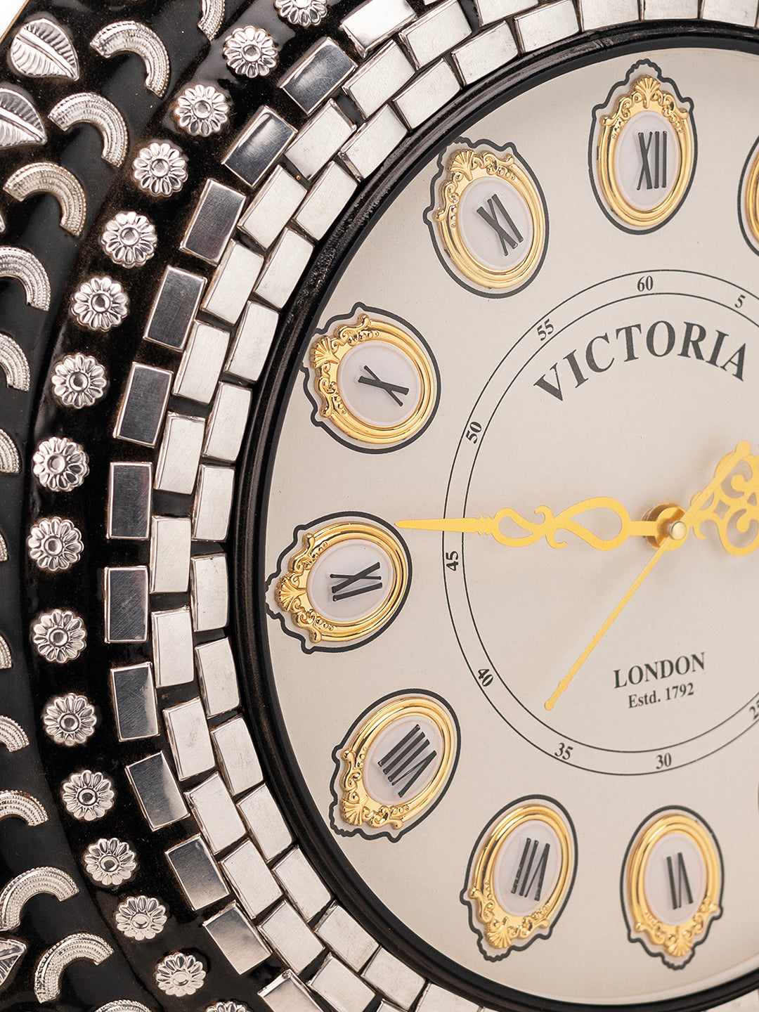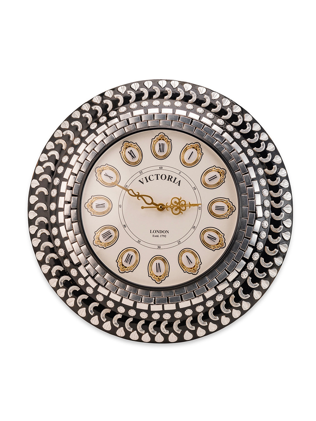 Victoria Royal Mirror-Accent Wall Clock with Roman Numerals – Plastic Frame