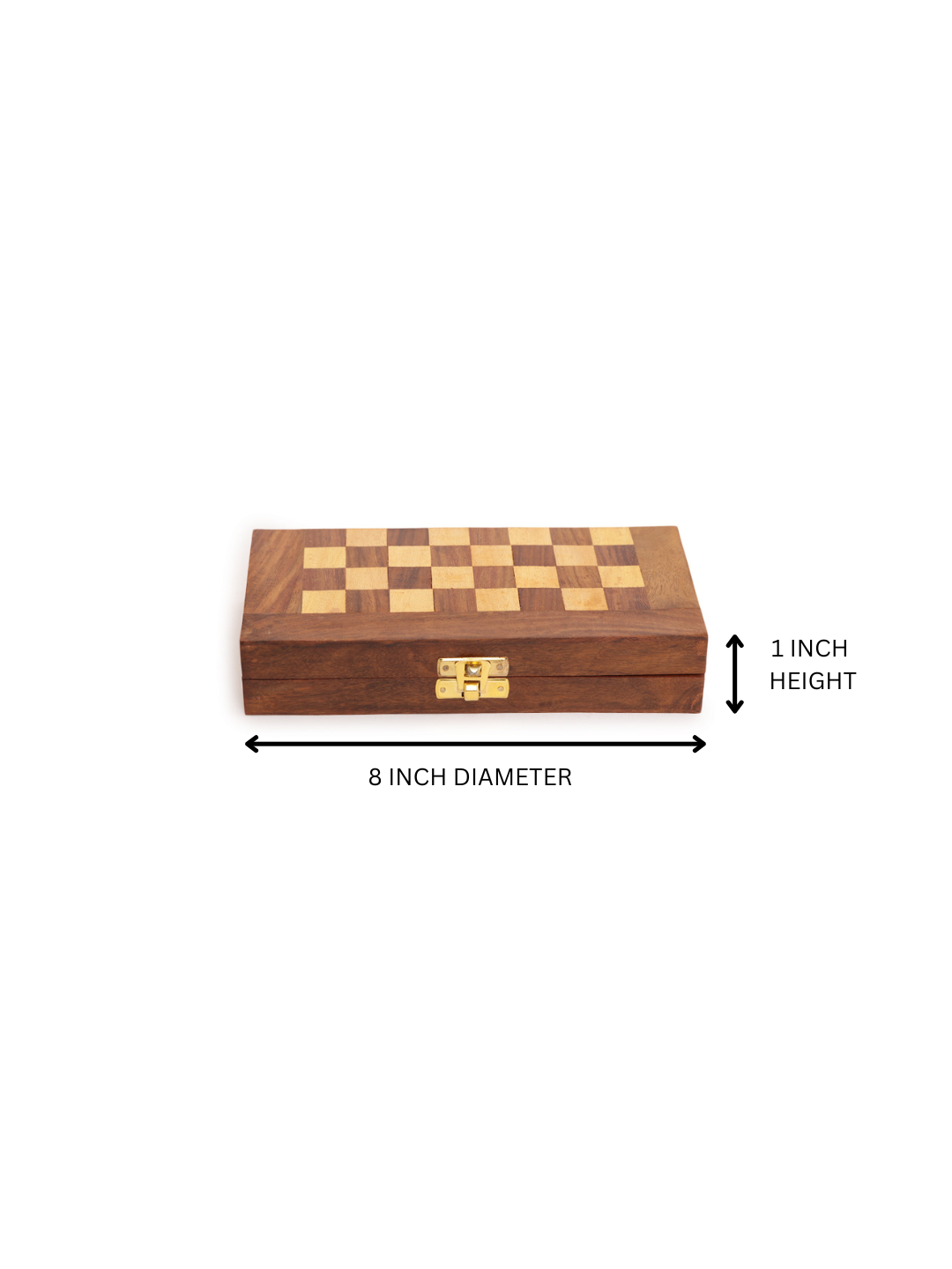 Enjoy the classic game of chess anywhere with our Handcrafted Wooden Magnetic Travel Chess Set. This compact and beautifully crafted set features inlaid squares of contrasting natural woods on the playing board. The magnetic chess pieces ensure stable gameplay even on the go, making it perfect for travel, picnics, or cozy evenings at home. The set also conveniently folds and often includes internal storage for the chess pieces, keeping everything organized and secure.