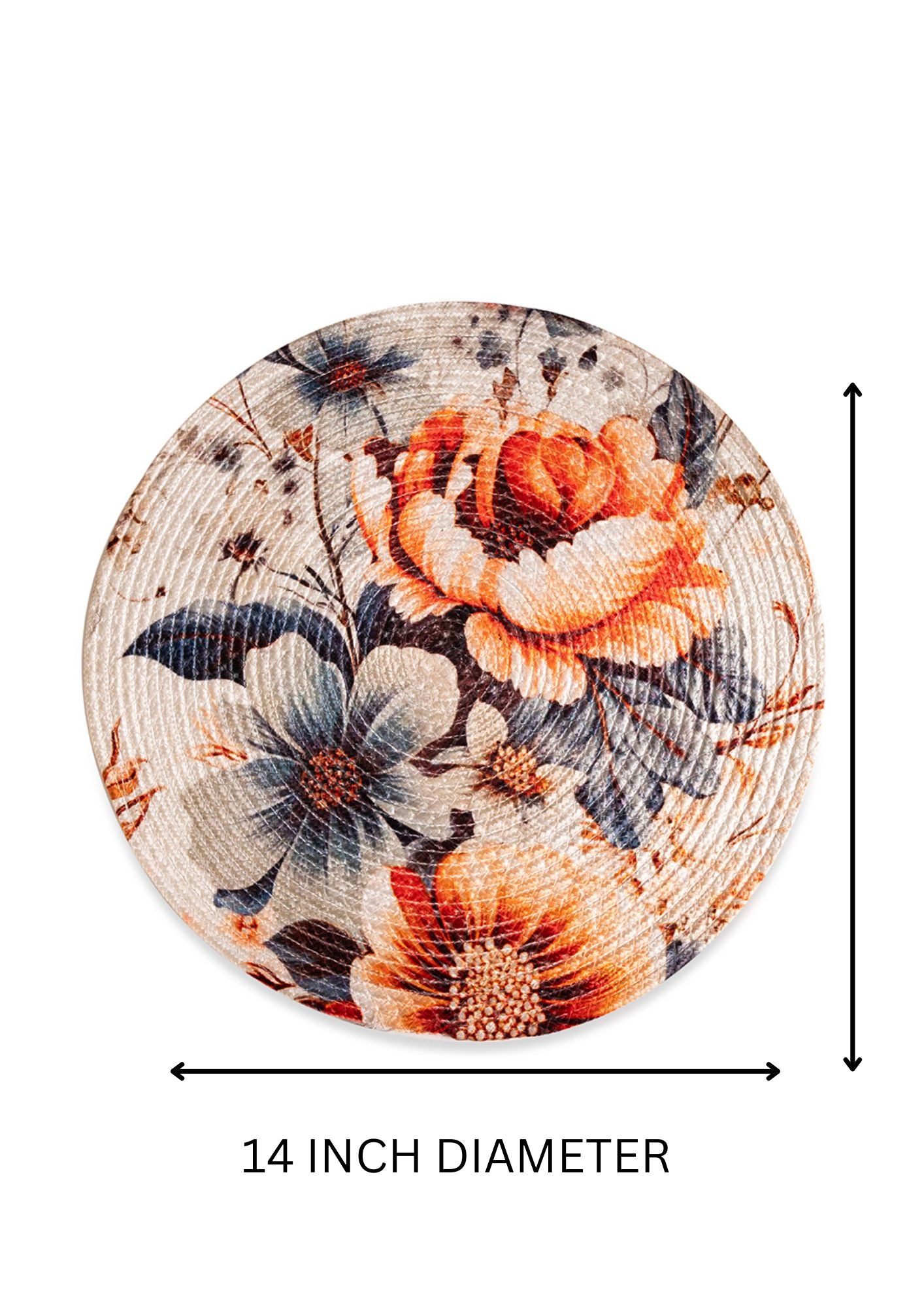 Introducing our table placement mat, the perfect addition to your dining table. Made from durable printed cotton, this 14-inch round mat offers both style and protection for your table. Its unique design adds a touch of elegance to your dining experience, making it perfect for special occasions or everyday use. Not only does it protect your table from spills and scratches, but it also enhances the beauty of your home interiors with its beautiful print. Elevate your dining experience with our one-of-a-kind table placement mat.