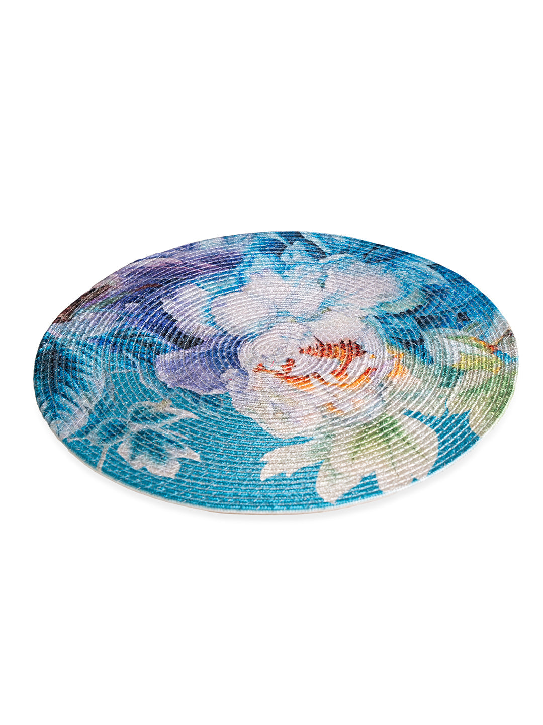 Introducing our AP-010-MUL table placement mat, the perfect addition to your dining table. Made from durable printed cotton, this 14-inch round mat offers both style and protection for your table. Its unique design adds a touch of elegance to your dining experience, making it perfect for special occasions or everyday use. Not only does it protect your table from spills and scratches, but it also enhances the beauty of your home interiors with its beautiful print. Elevate your dining experience with our one-of-a-kind table placement mat.