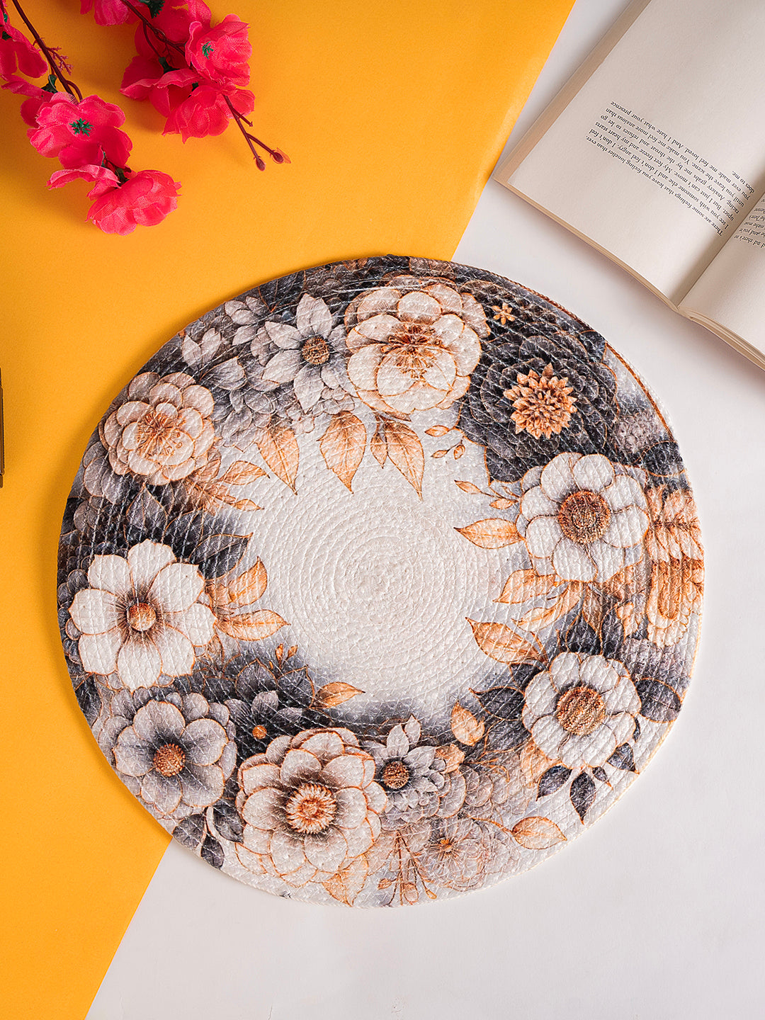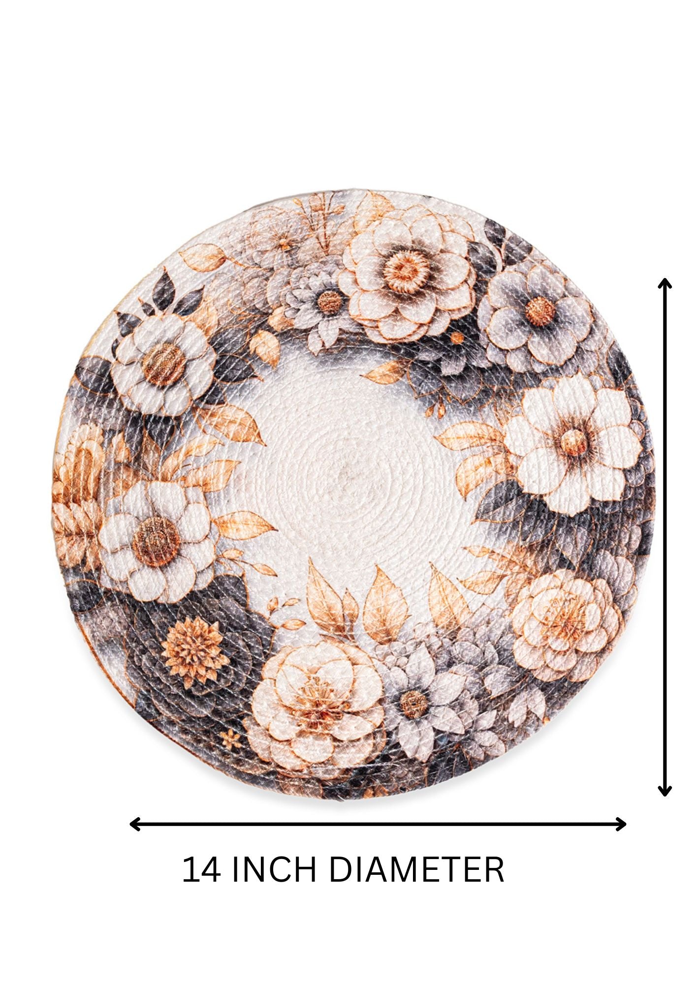 Elevate your dining experience with our 14-inch round table placement mat. Crafted from durable printed cotton, this mat offers both style and protection for your dining table. The beautiful design adds a touch of elegance to your home interiors, making it perfect for special occasions or everyday use. The round shape fits perfectly on any table, while the durable material ensures long-lasting use. Add a touch of sophistication to your dining table with our 14-inch round table placement mat.
