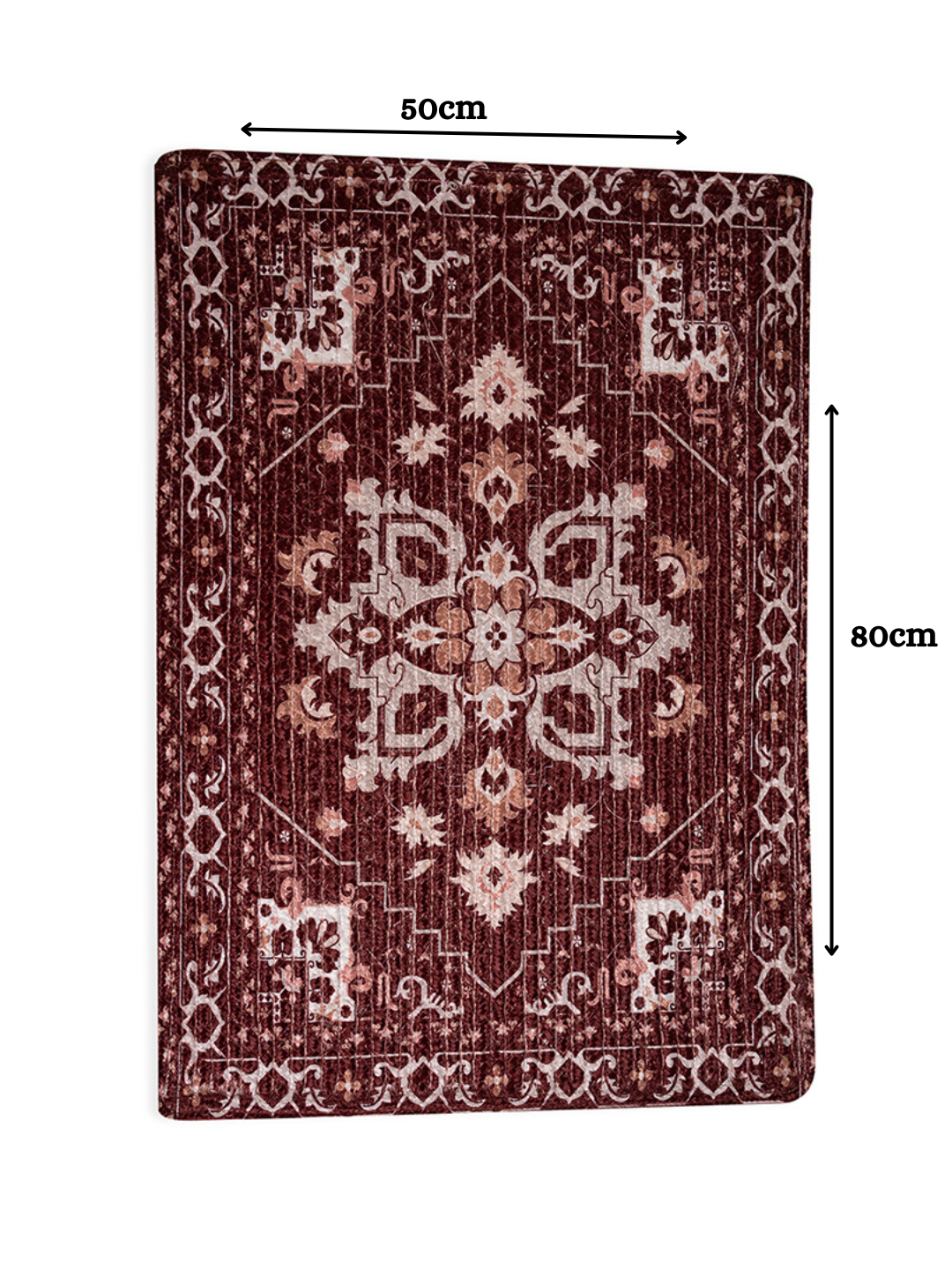 This exquisitely designed rug is a must-have for any home. Handwoven on a wooden loom in rural India, it boasts a unique vintage look that will add character to any room. Measuring 50x80 cm, it is the perfect size for a bathroom, washroom, kitchen, or any area that may experience splashes of water.