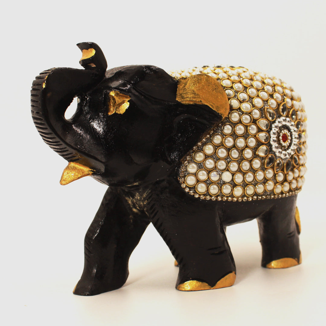 Artisan Royal Elephant Figurine with Gemstone Inlay