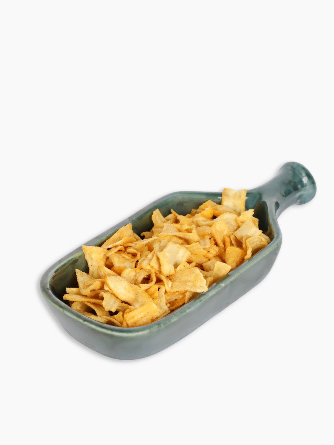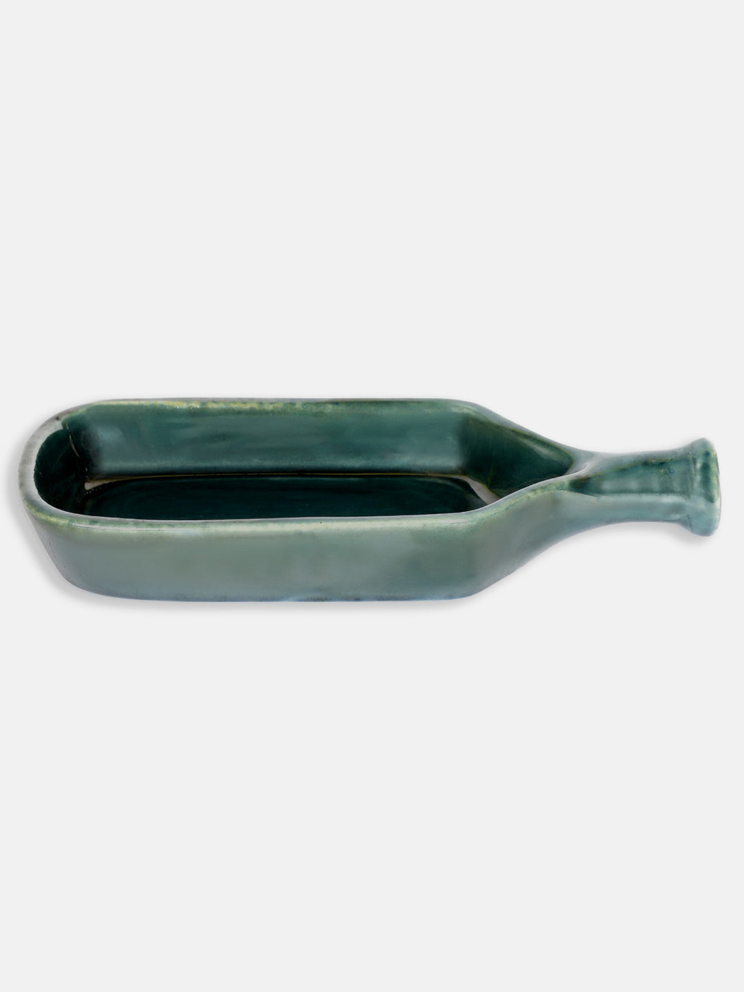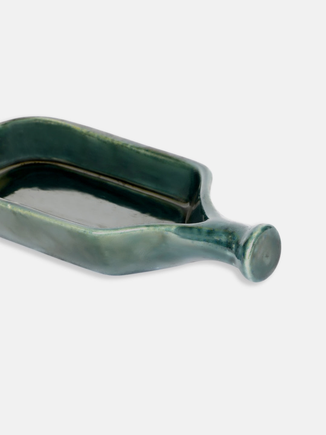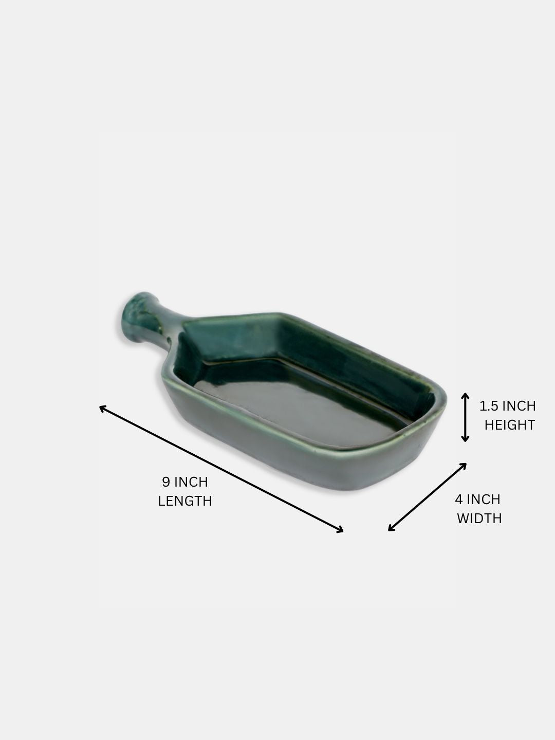 The bottle-style handle adds a touch of elegance and makes it easy to carry from the kitchen to the table. Made from high-quality ceramic, this platter is not only stylish but also durable and long-lasting. It's the perfect combination of form and function.
