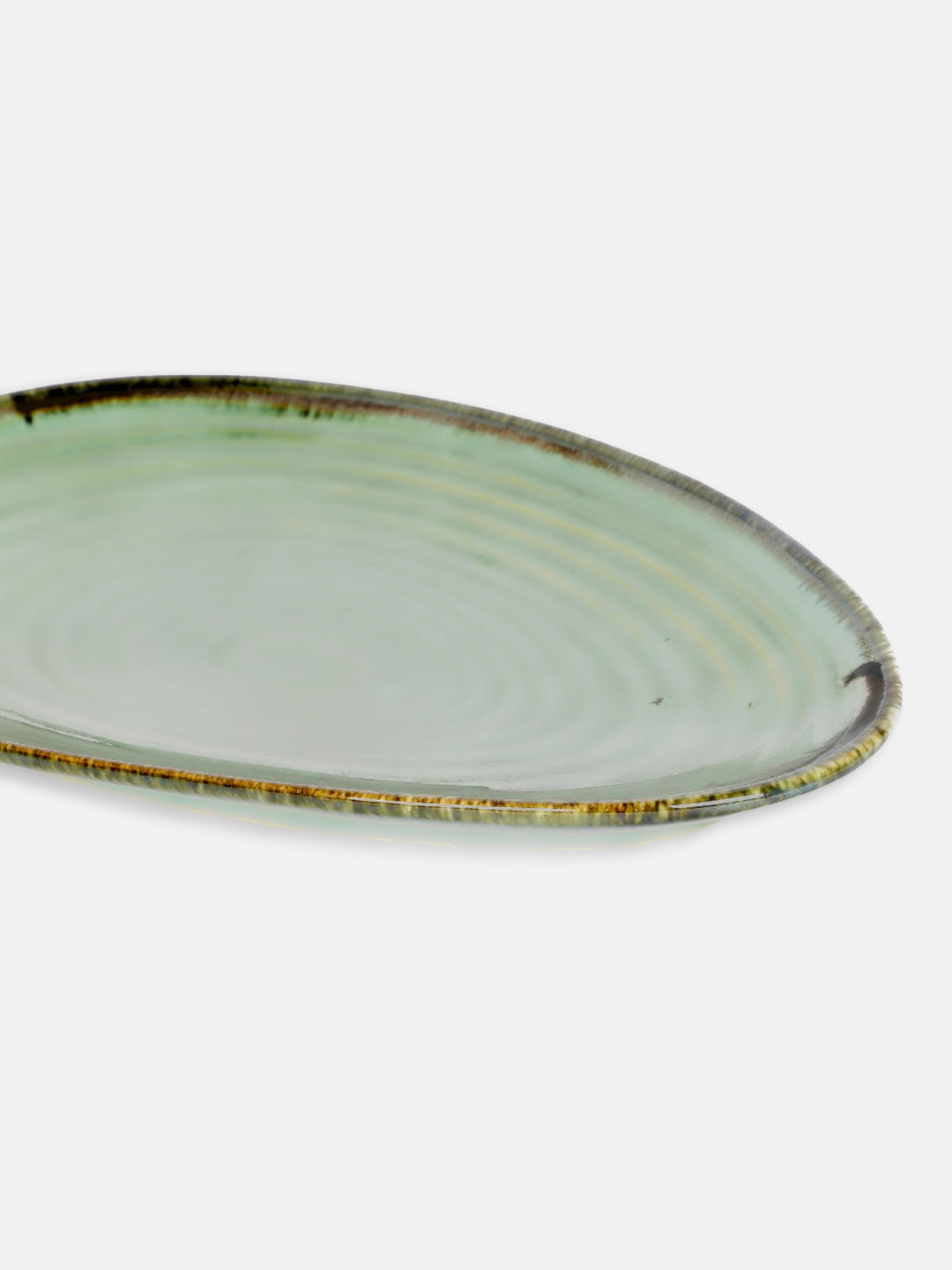 Add a touch of sophistication to your dining experience with our handcrafted ceramic serving platter. This unique platter features an oval leaf shape, making it a standout piece on any table. Made with high-quality ceramic, it is durable and perfect for serving your favorite dishes.