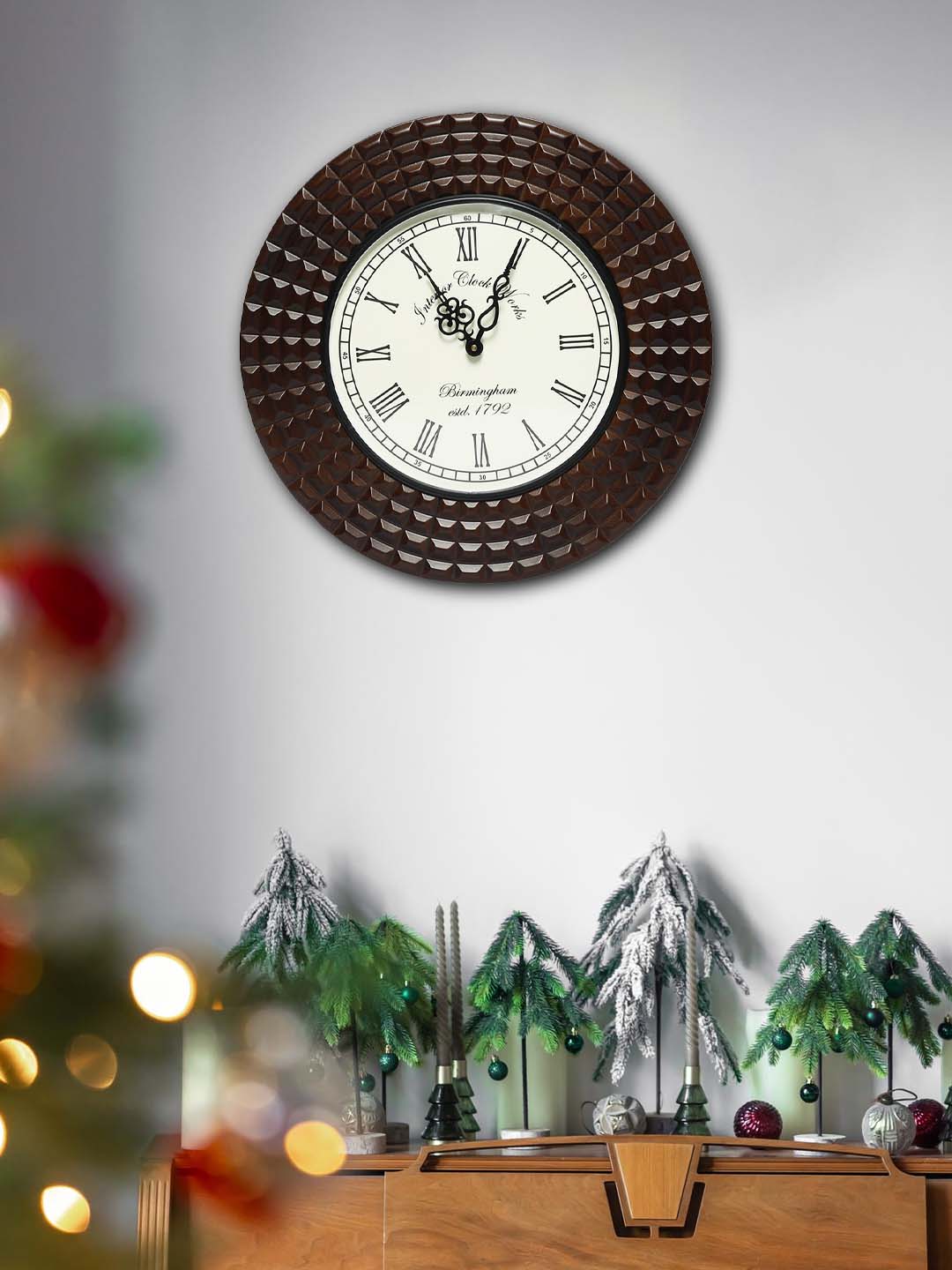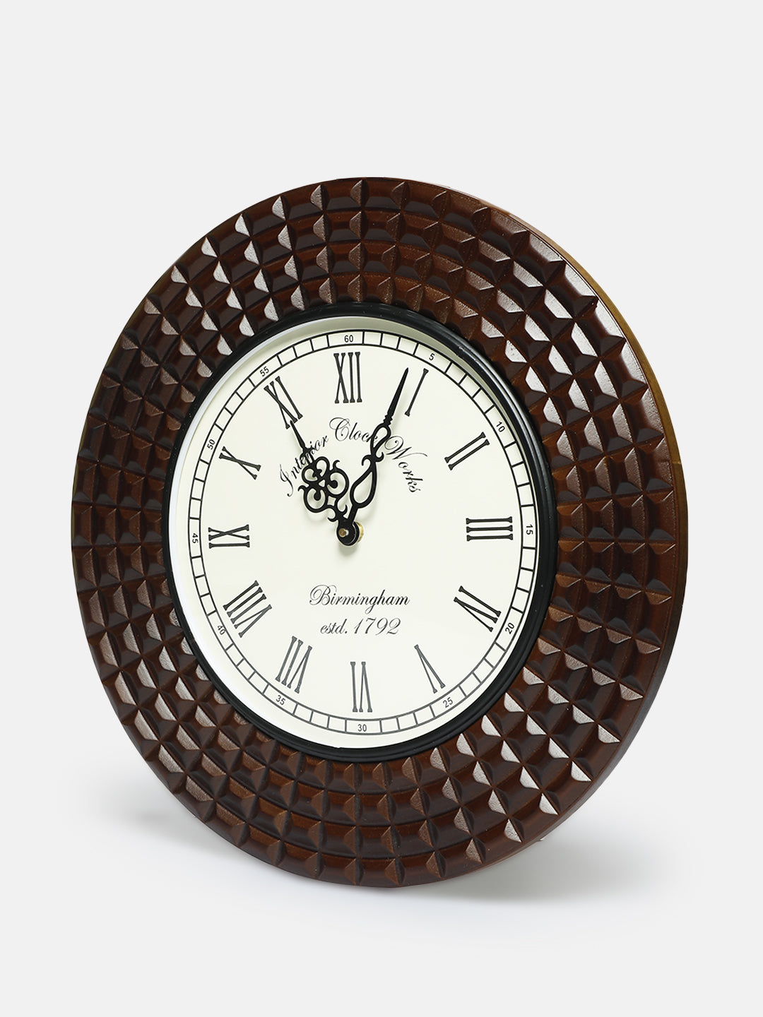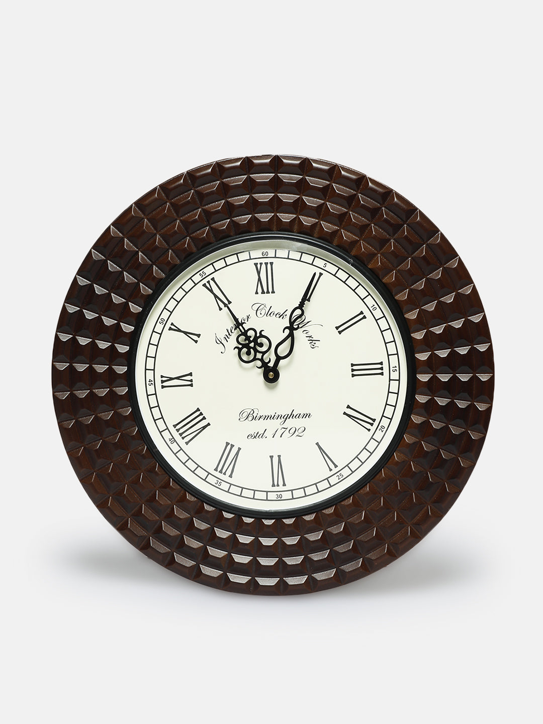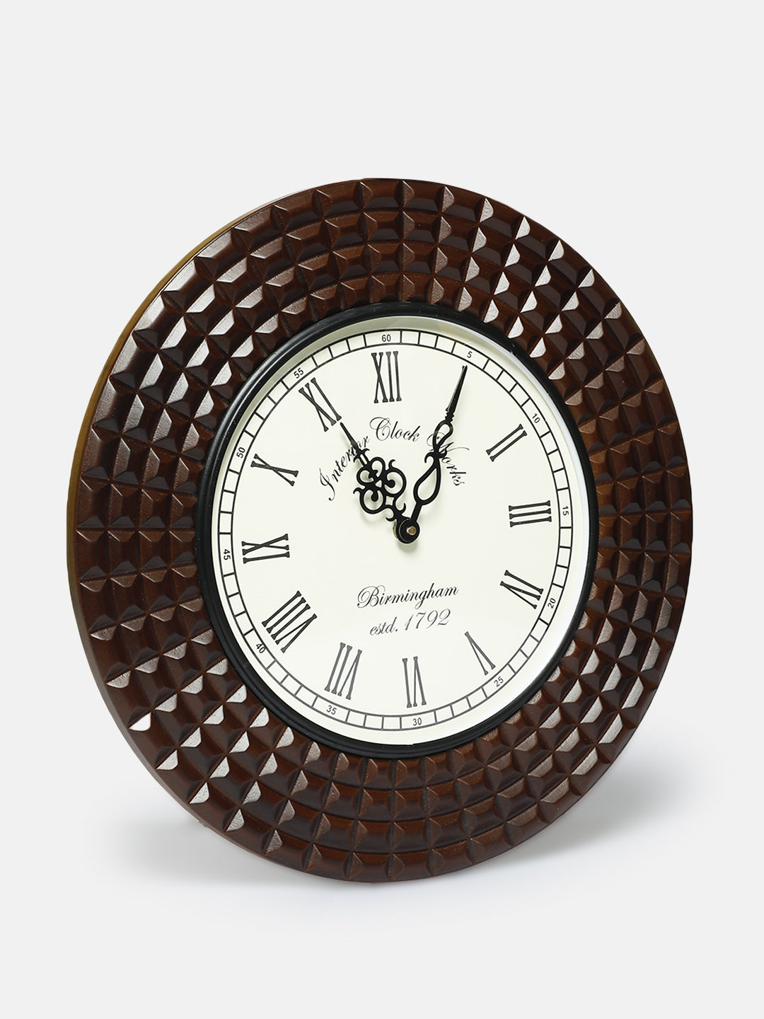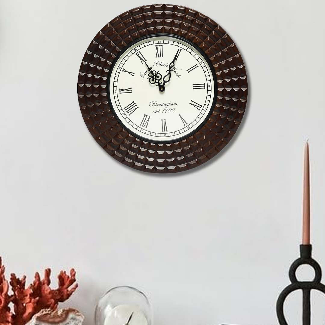 Decorative Wall Clock with Wooden Frame, 40X40 cm Diameter Color Brown