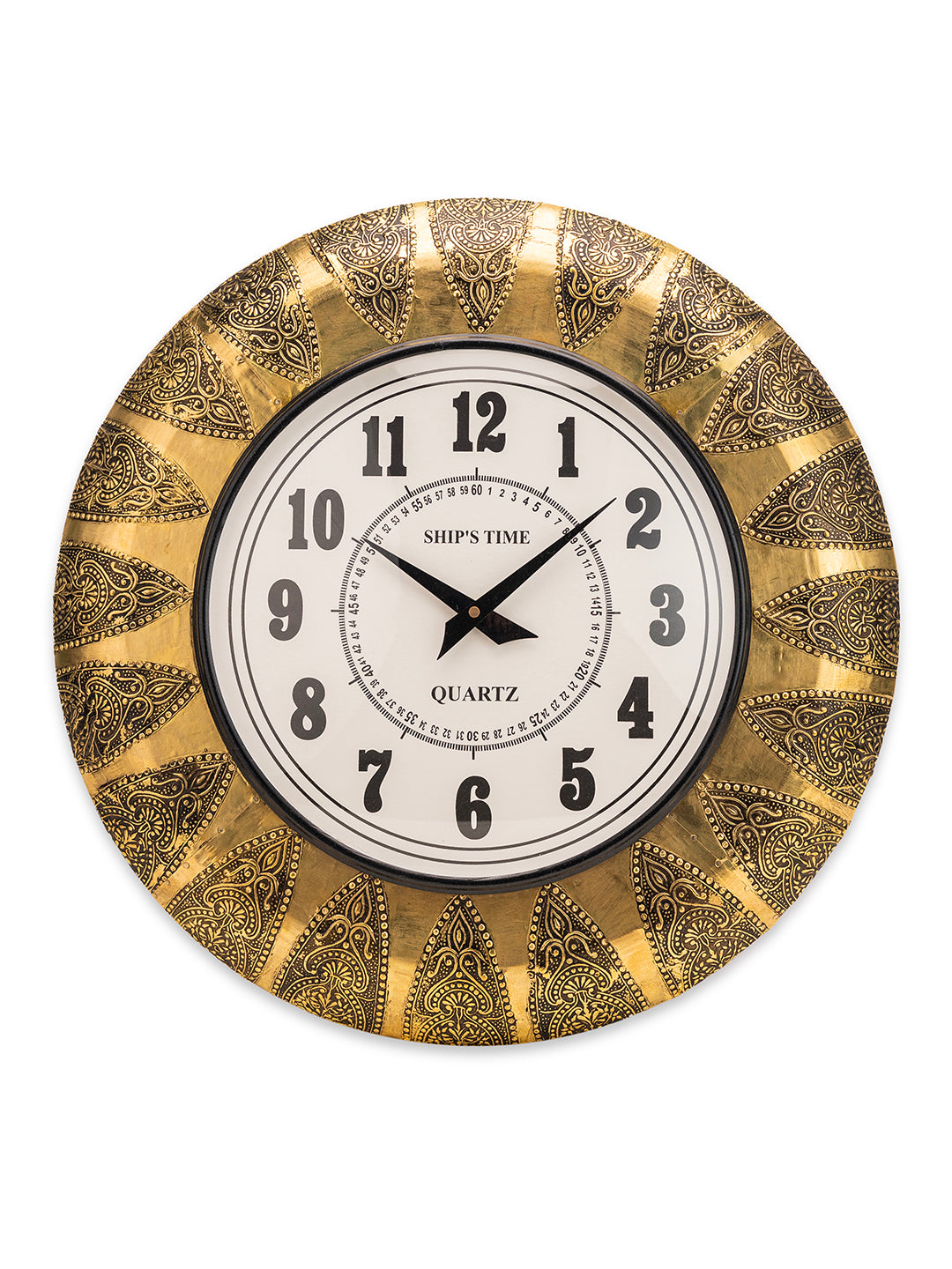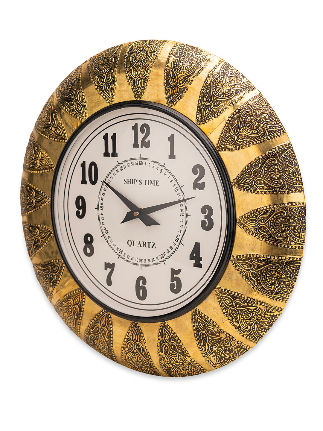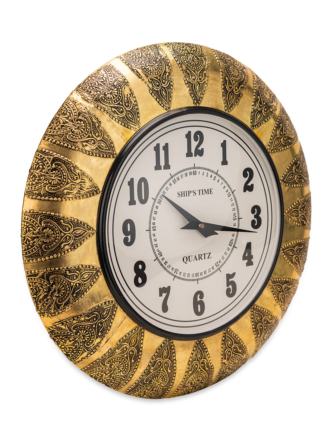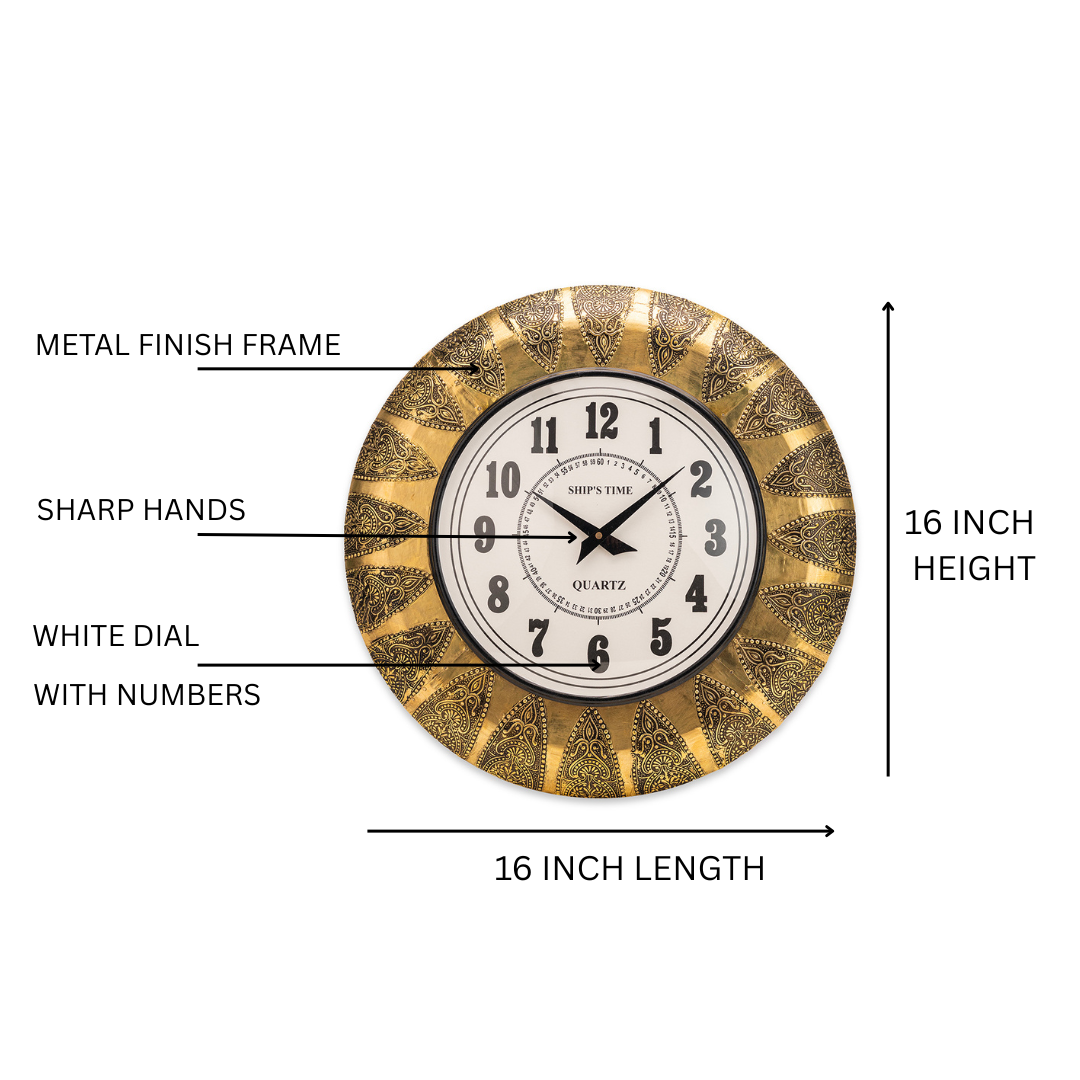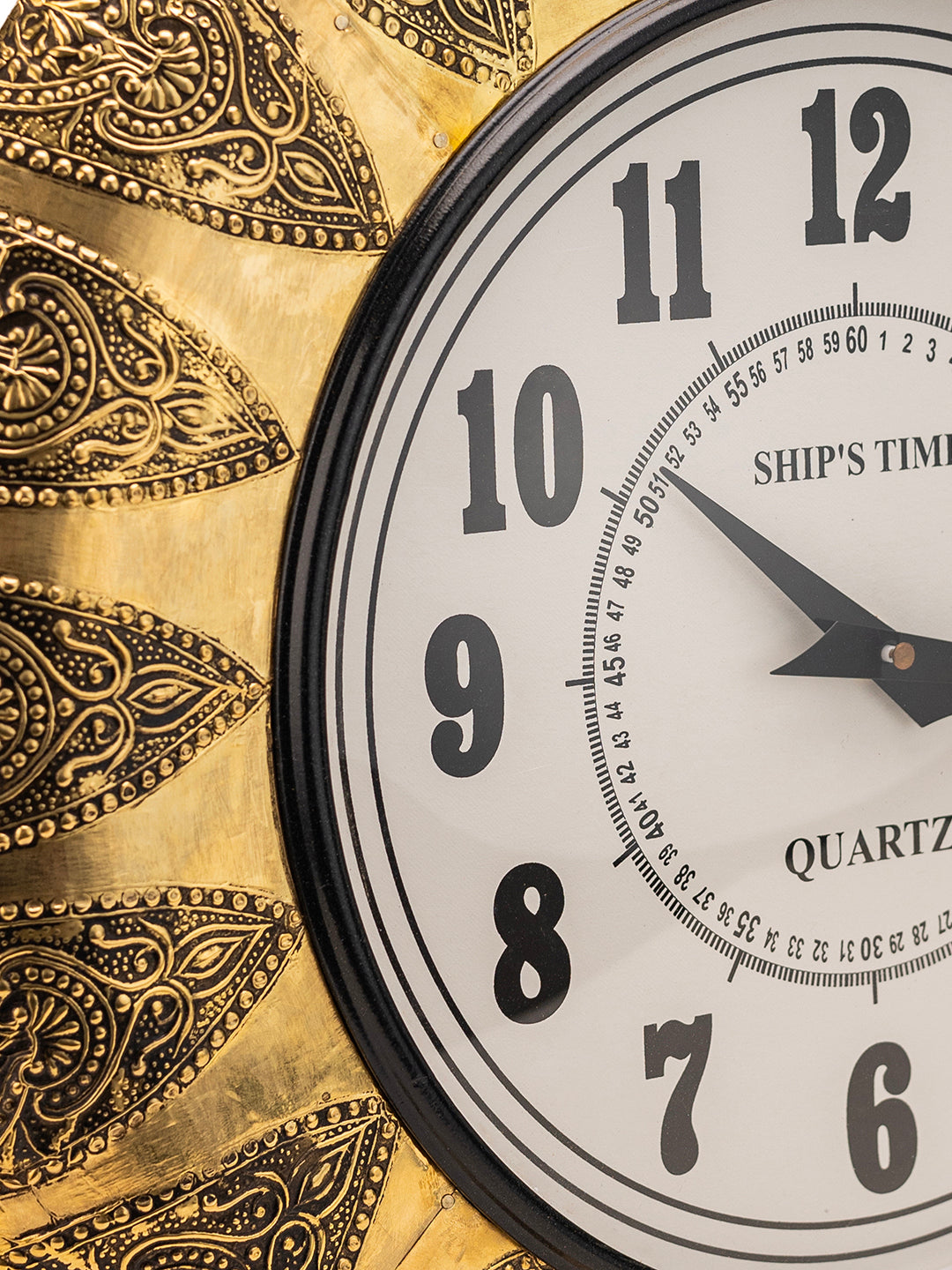 Golden Ornate Plastic Frame Wall Clock – Vintage Ship’s Time Design