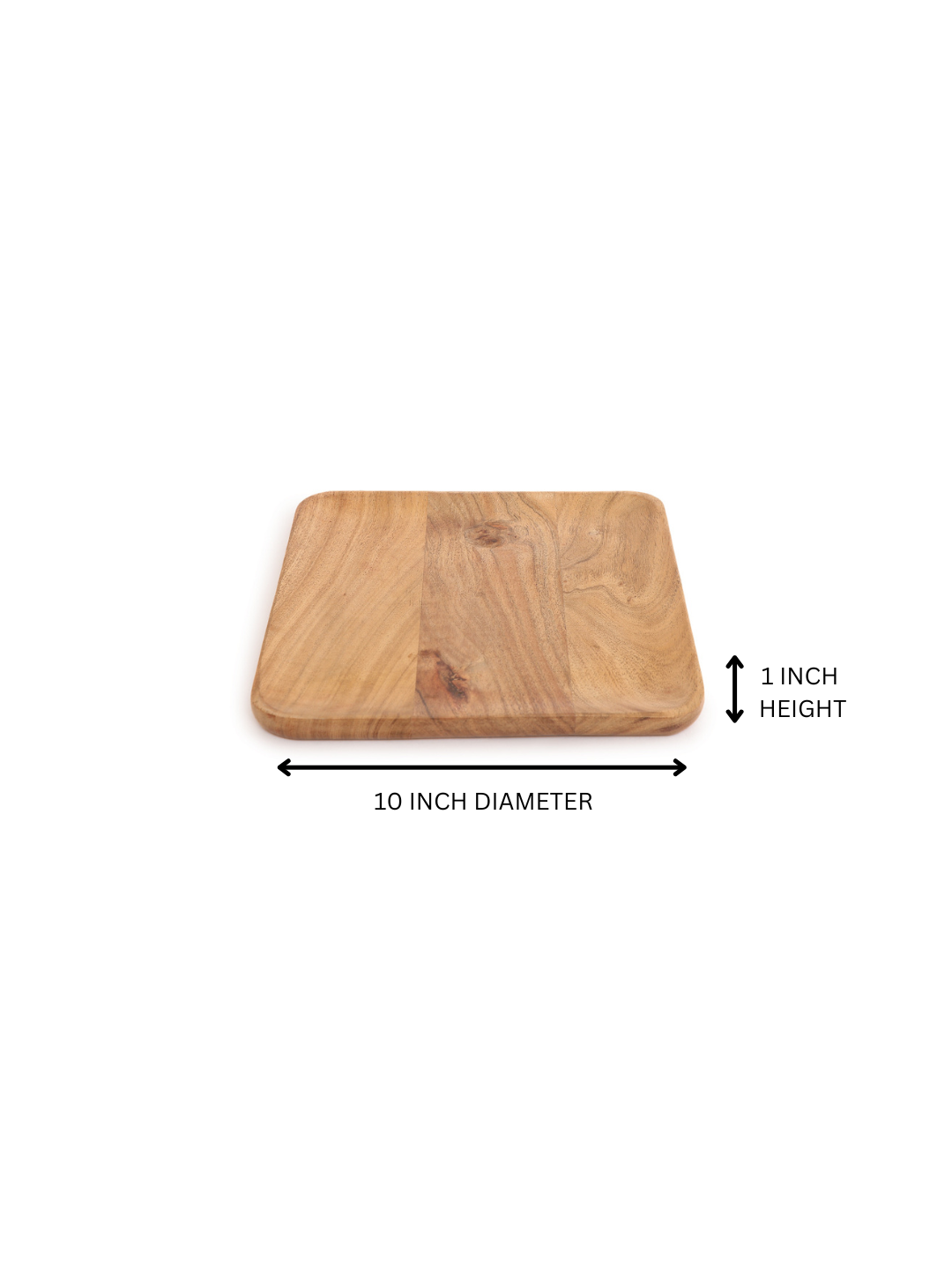"Elevate your serving experience with our Handcrafted Square Wooden Serving Tray. Crafted from natural wood with a warm, inviting tone, this tray features a clean square shape with gently rounded edges for a smooth and comfortable feel. Perfect for serving snacks, appetizers, drinks, or as a simple yet elegant decorative base, this tray brings a touch of natural warmth to any setting.