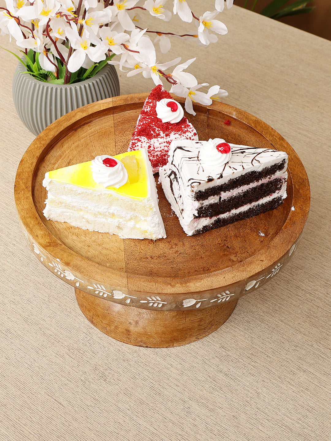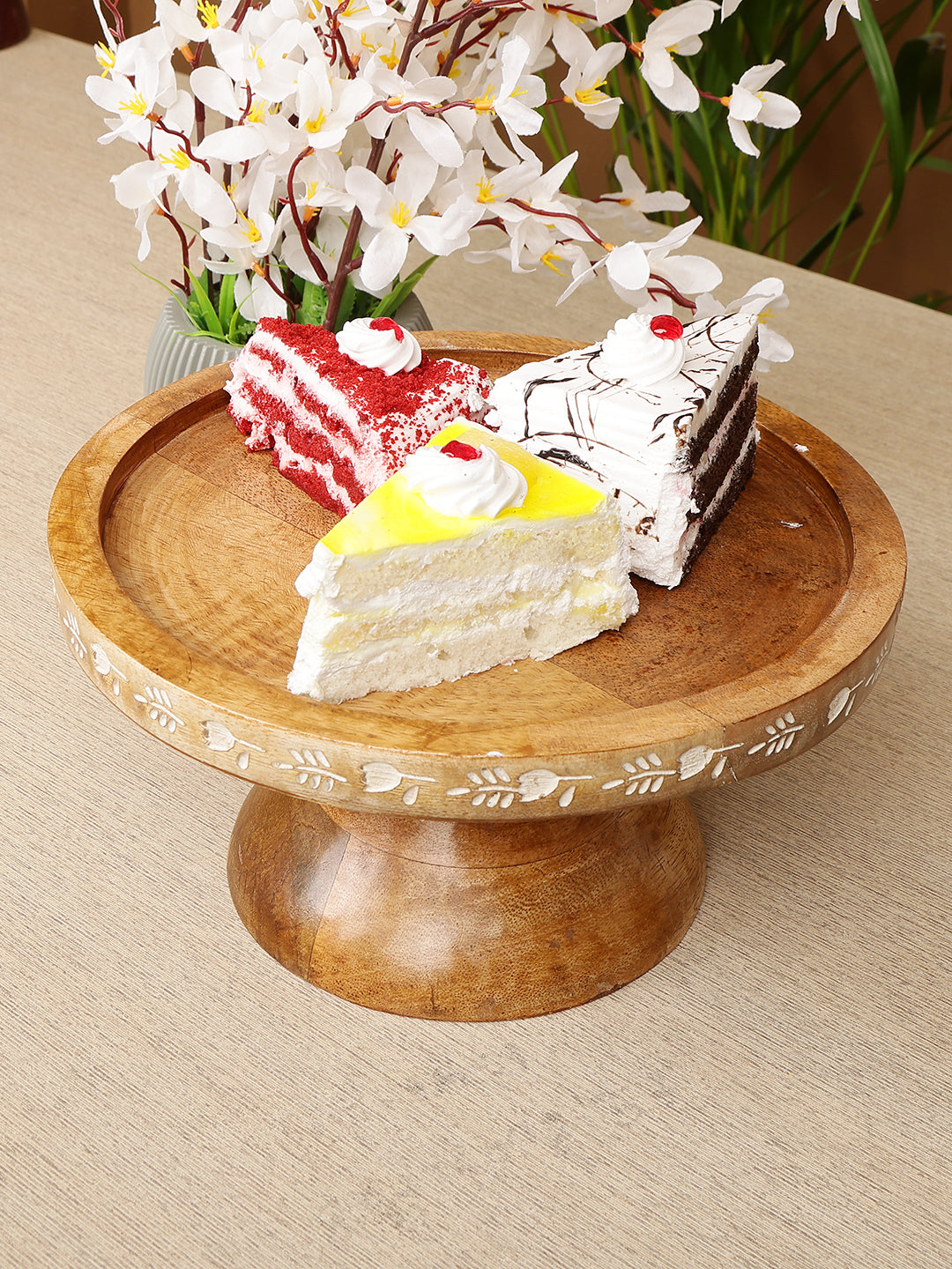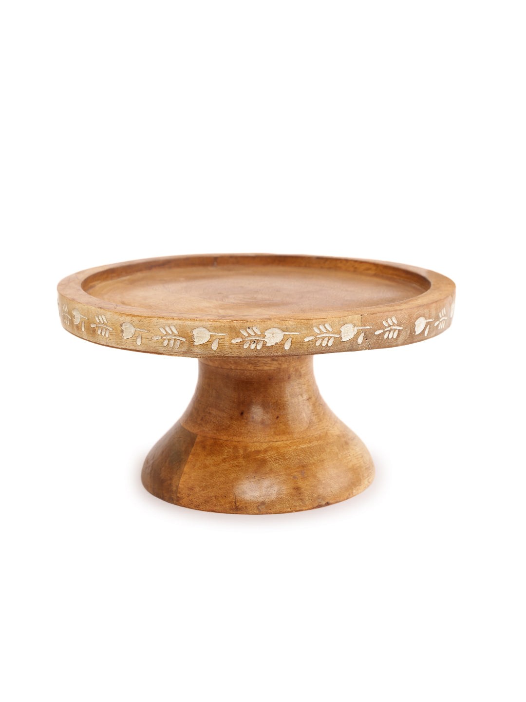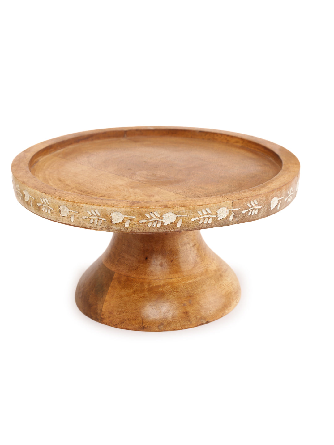 Elevate your cakes and desserts with our Handcrafted Wooden Oval Cake Stand. Crafted from natural wood with a warm, inviting tone, this charming stand features a graceful oval silhouette and a delicate inlay border along the rim. This subtle yet elegant detail adds a touch of sophistication to your presentation, making it perfect for displaying your culinary masterpieces at any gathering or celebration.