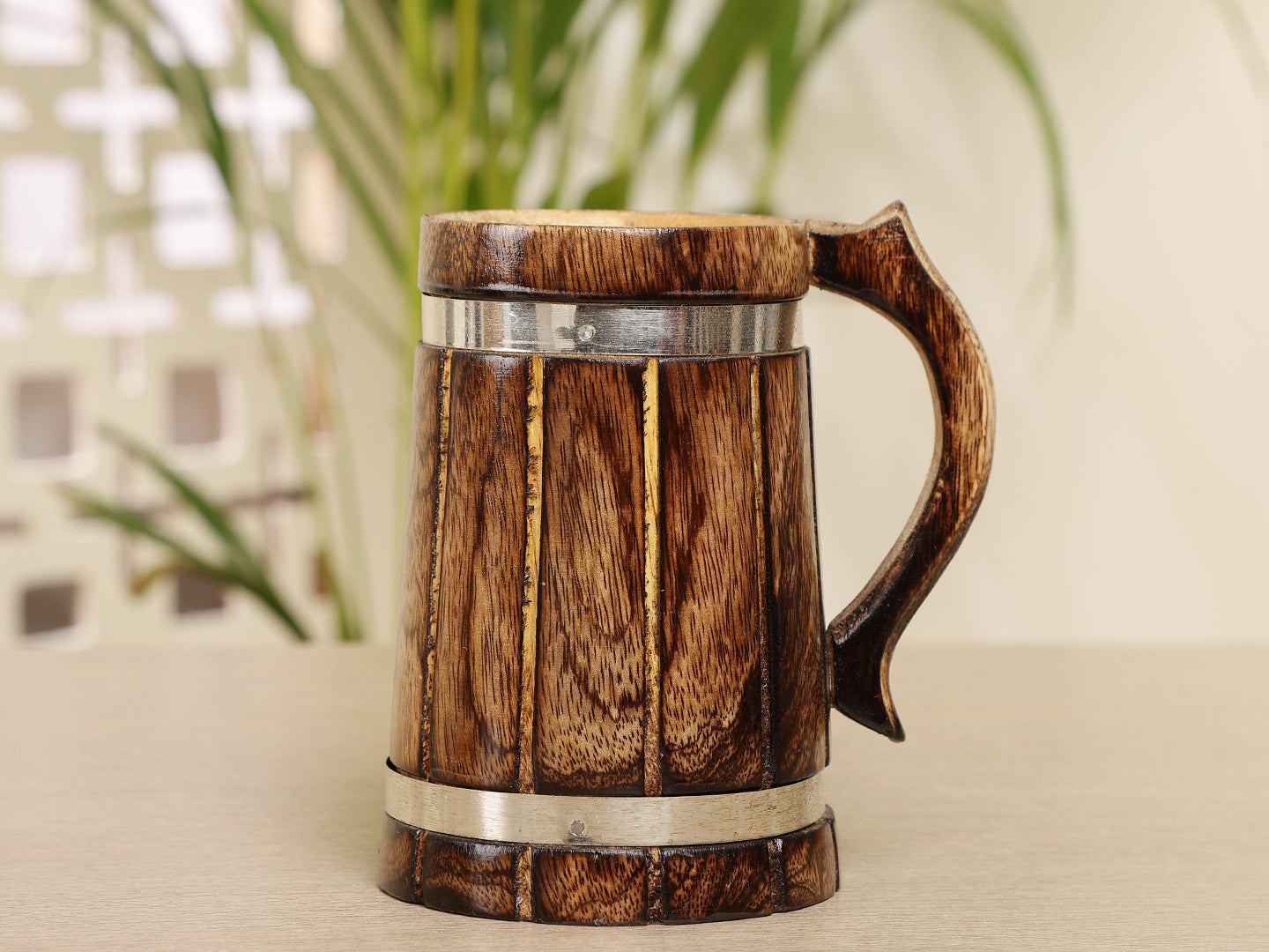 Elevate your drinkware collection with the Homeique Rustic Wooden Bear Mugs Designed with an old-world charm, these handcrafted mugs bring a tavern-style vibe to your home bar. Made from premium-quality wood with metal band detailing, they offer an authentic and stylish way to enjoy your favorite beer or beverage.