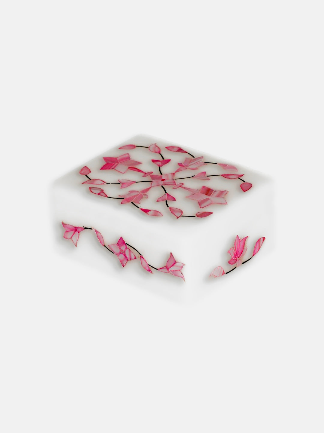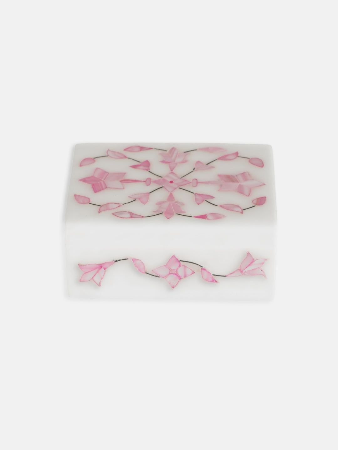 Pink Color Marble Handicraft Marble Inlay Box Jewellery