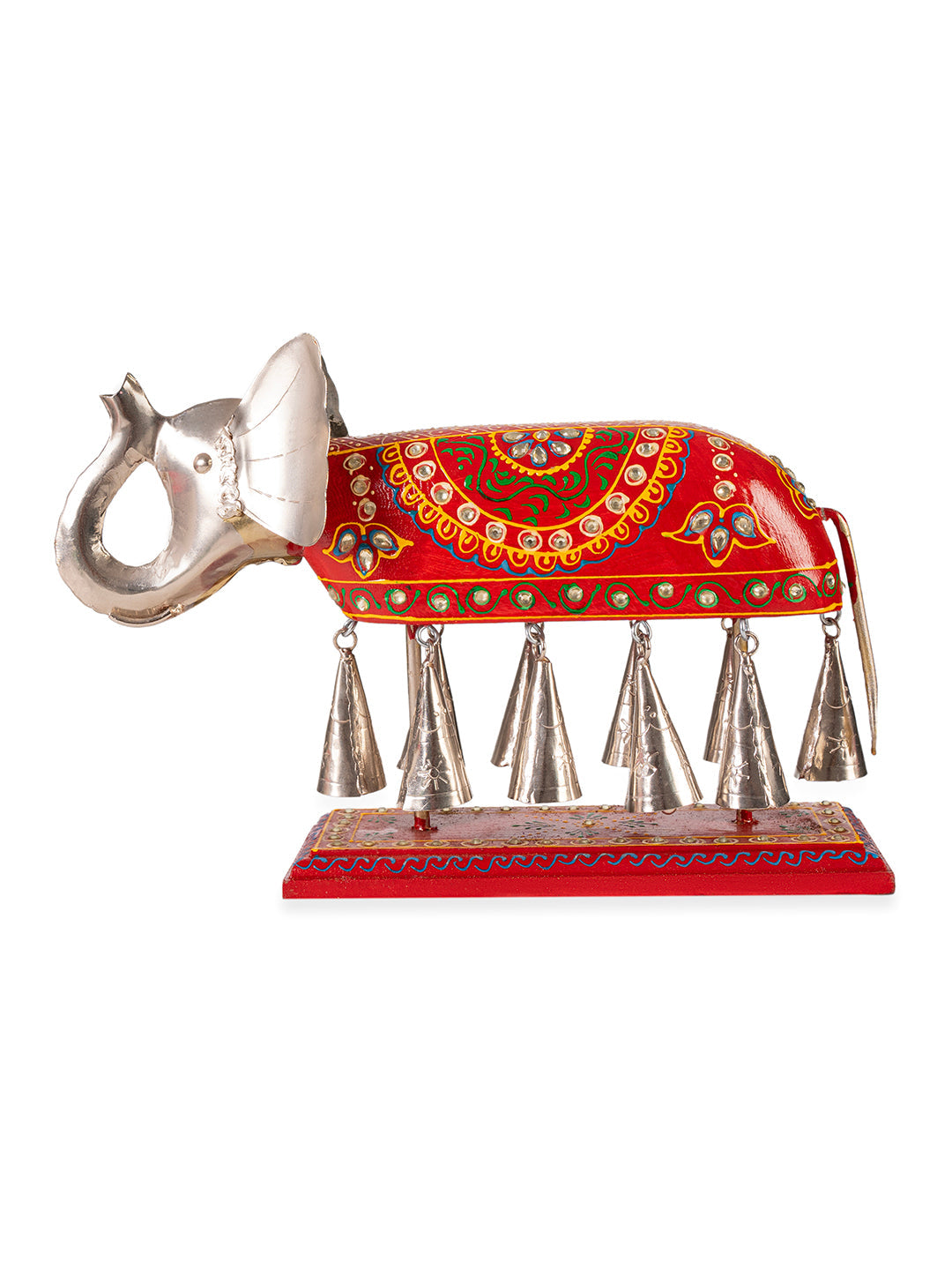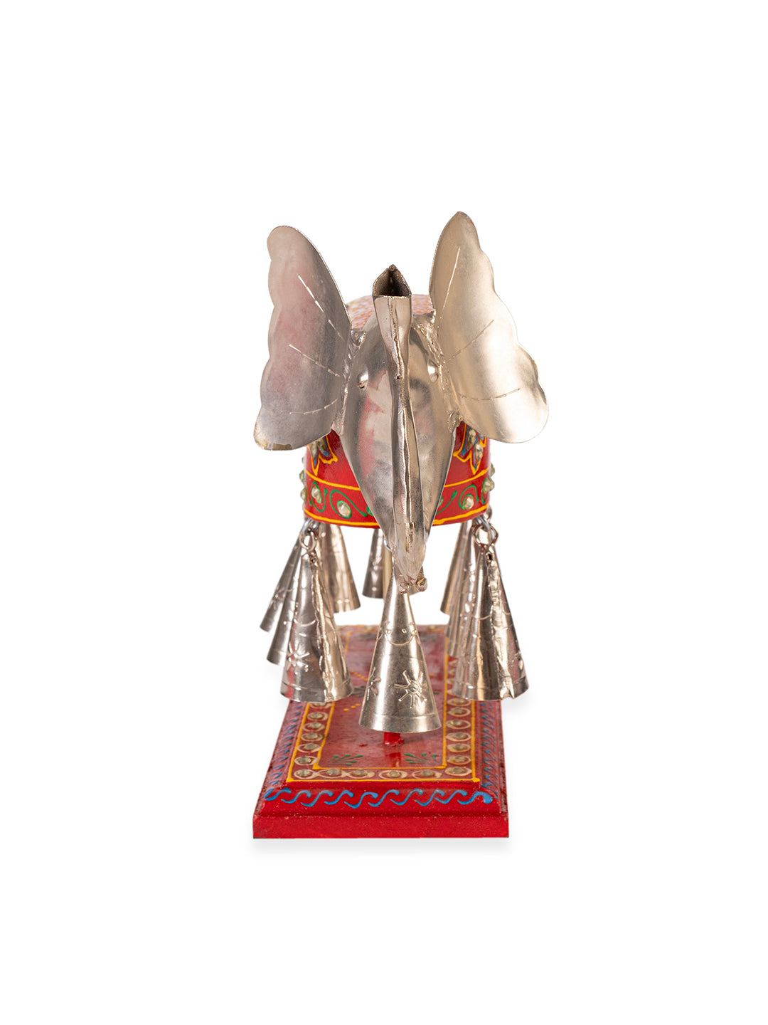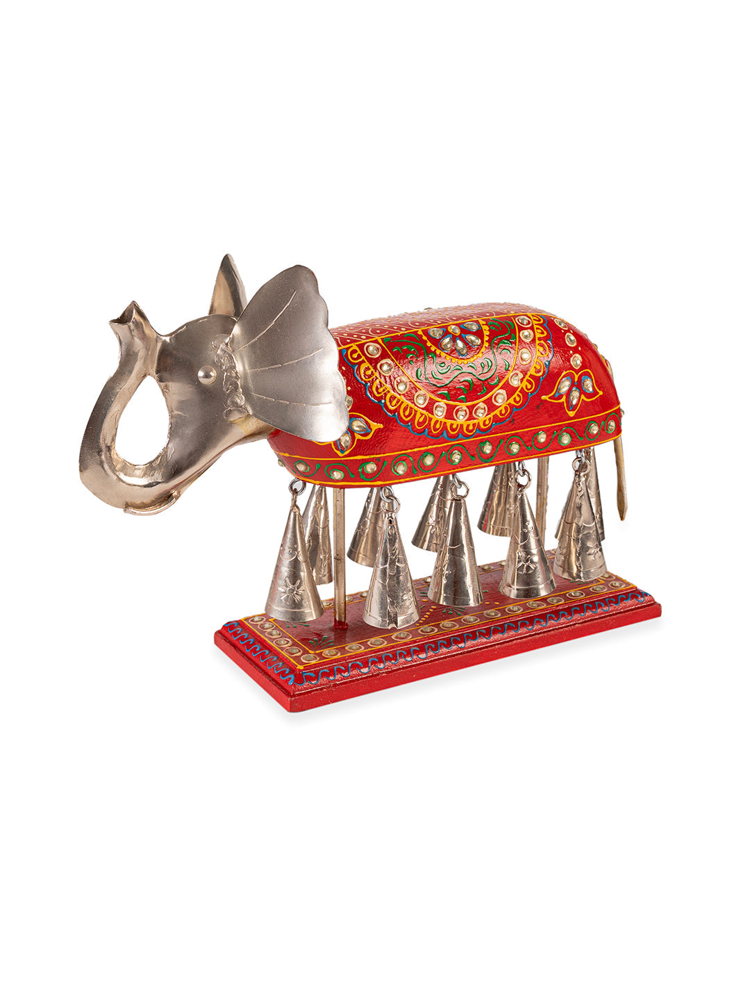 This hand-painted wood and metal craft horse figurine is inspired by Rajasthan's traditional 'Kacchi-Ghodi/Elephant-Dance'. It is decorated with 10 metal bells, making it not only a beautiful decor piece but also a symbol of prosperity. In Rajasthan, elephant sculptures and articles are believed to bring strength, wisdom, and good fortune to households, temples, and workplaces.