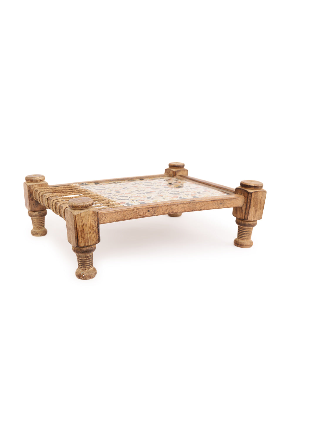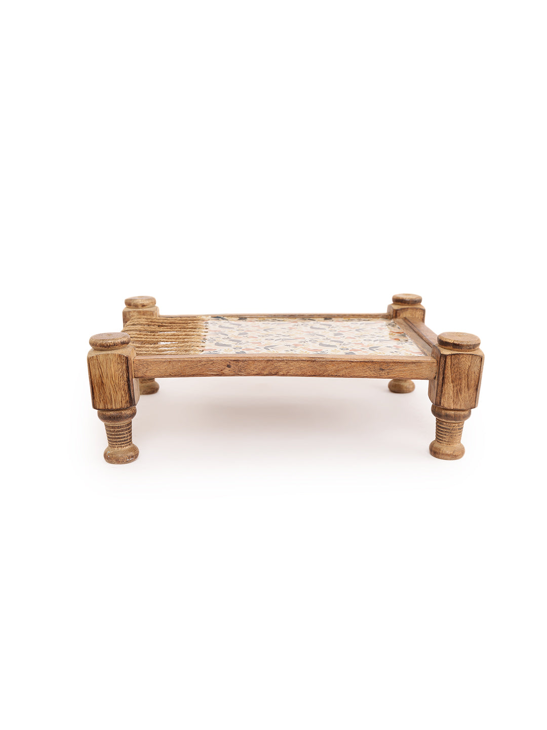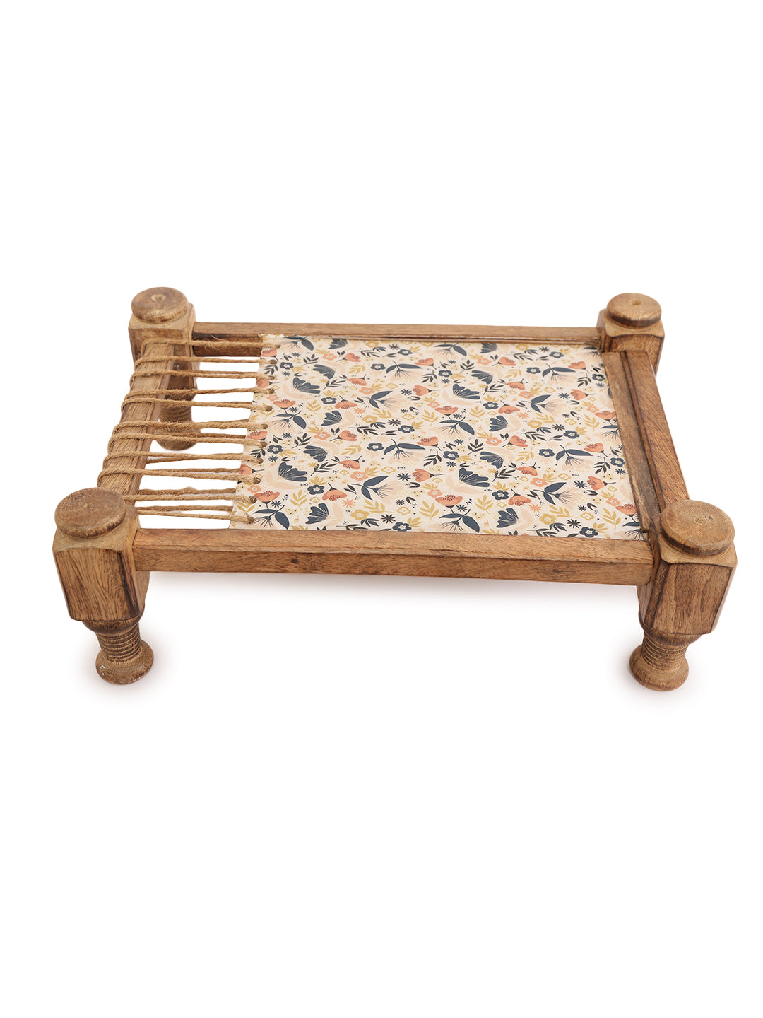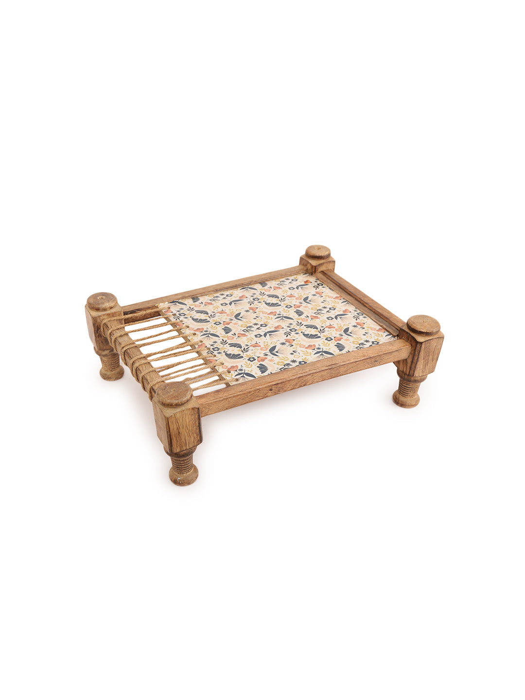 Bring a unique and culturally inspired touch to your serving rituals with our Rustic Khaat-Style Wooden Serving Platter. This distinctive piece draws inspiration from the traditional Indian "khaat" or charpoy, featuring a simple wooden frame reminiscent of its structure. The central serving area showcases a beautiful floral fabric inlay, protected by a clear coating, creating a vibrant and textured surface for presenting your culinary delights.