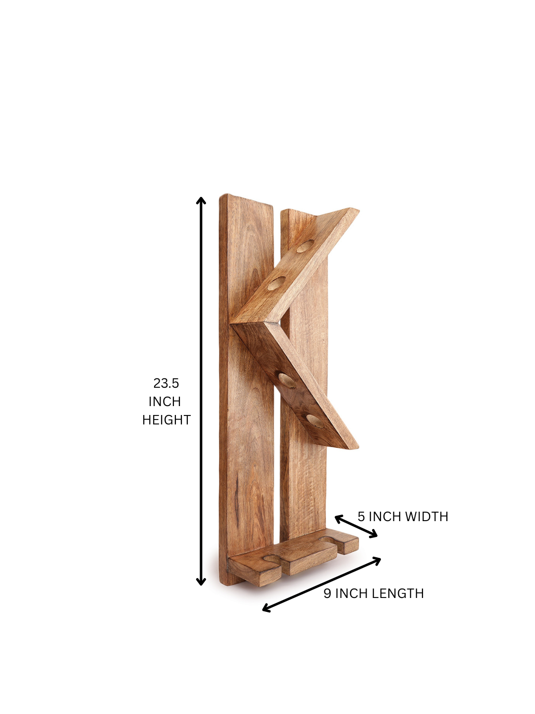 Showcase your favorite wine bottles in a unique and space-efficient way with our Rustic Wooden Wall-Mounted Wine Bottle Holder. Crafted from natural wood with a warm, inviting tone, this holder features a distinctive angled design that securely cradles your wine bottle while adding a touch of rustic charm to your kitchen, dining room, or bar area. Its wall-mounted design saves valuable countertop and floor space.