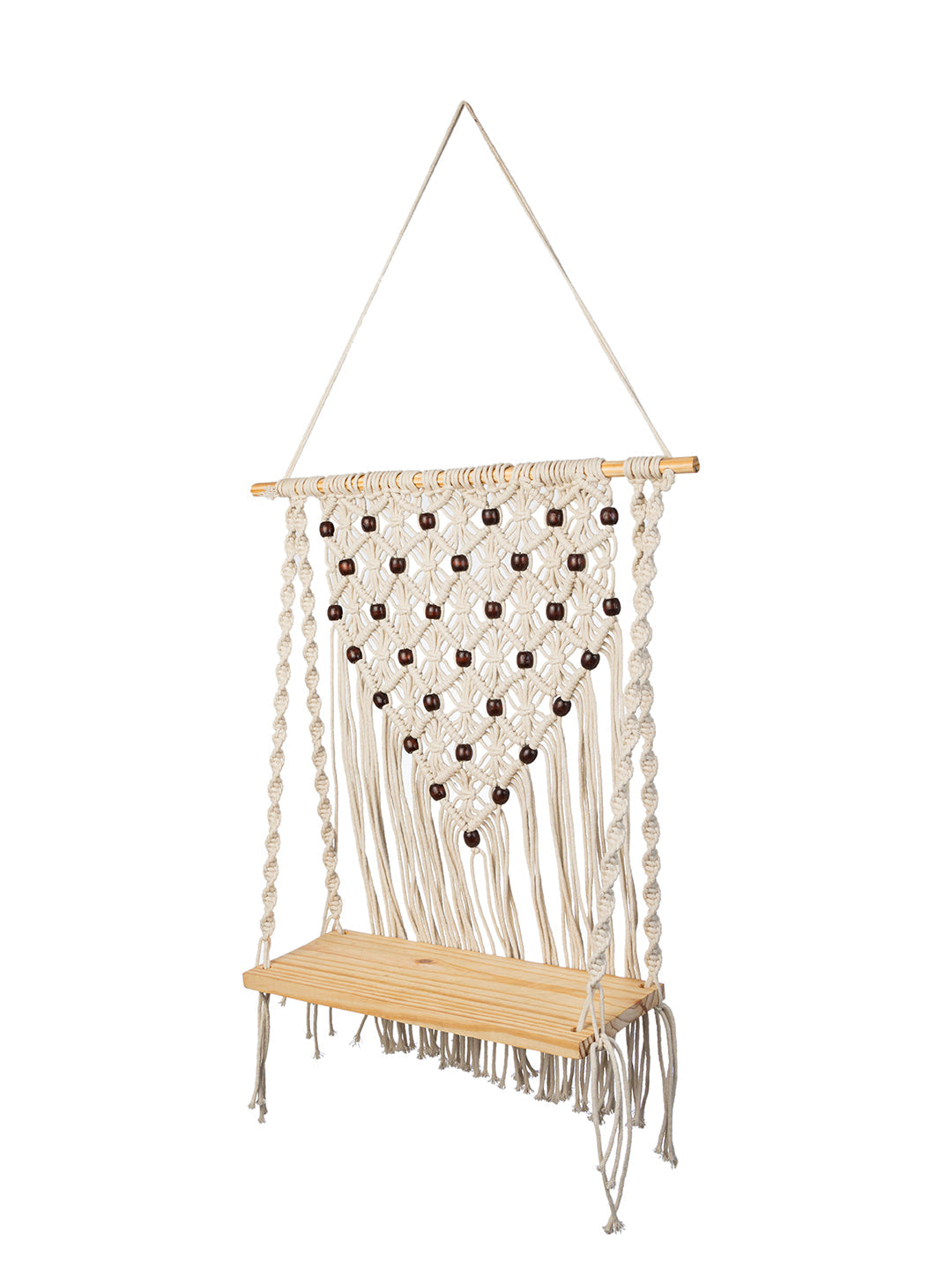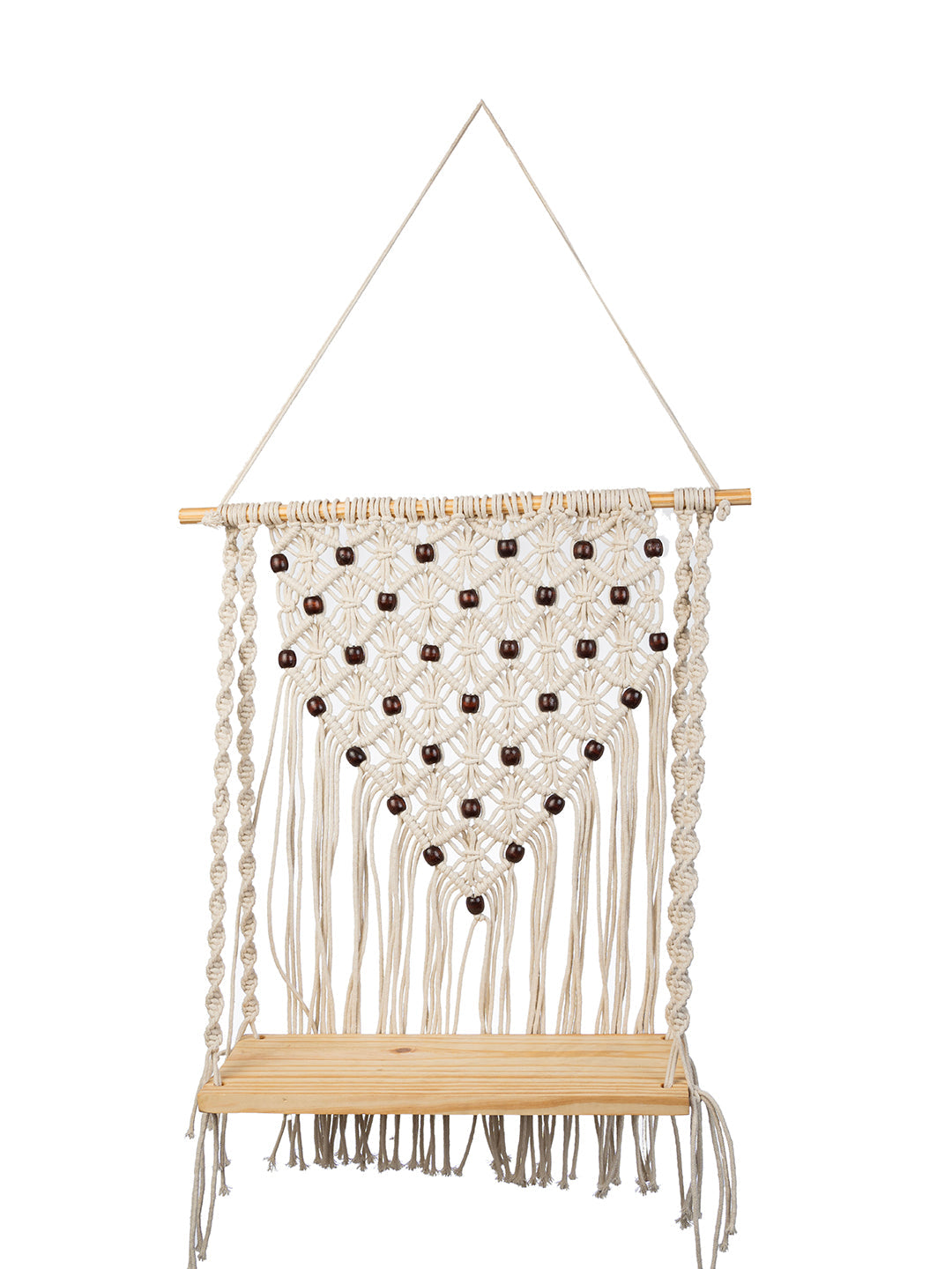 This beautiful macrame wall hanging shelf from Homeique is the perfect addition to any room. Handmade with care, it adds a touch of bohemian decor to your space. The intricate knotting and wooden structure make it a unique and eye-catching piece.