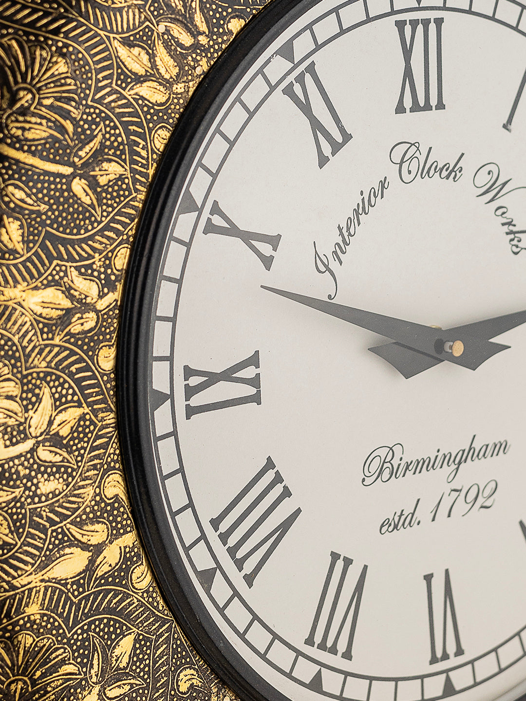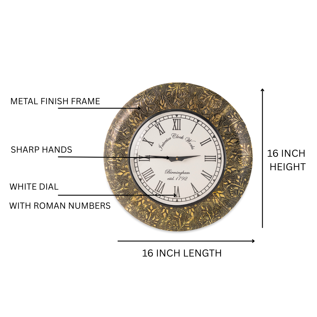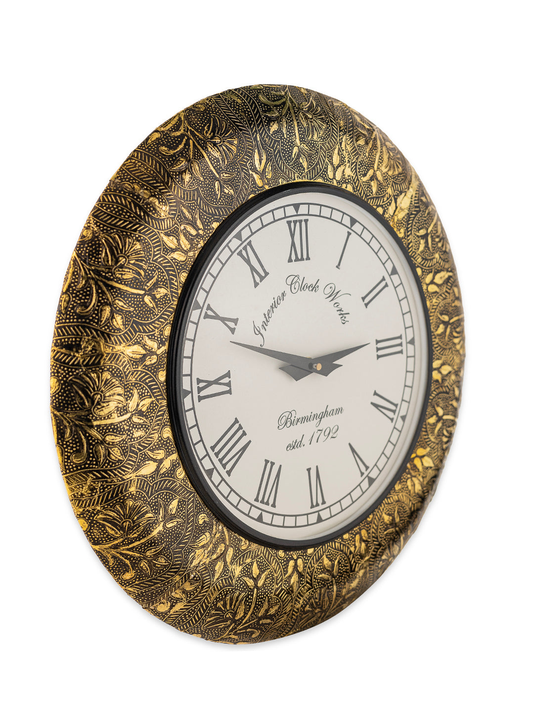 Vintage Roman Wall Clock with Gold Floral Plastic Frame
