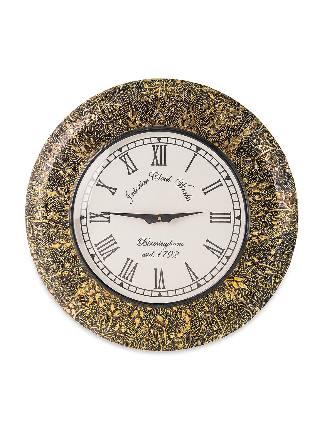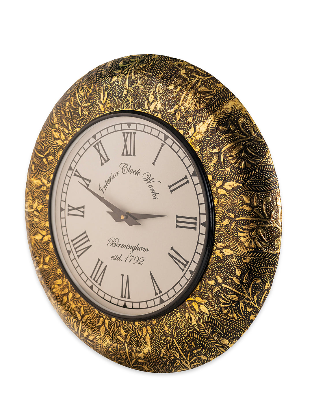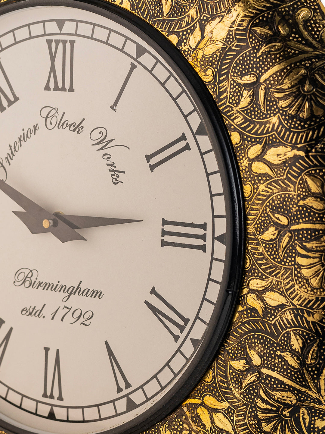 Vintage Roman Wall Clock with Gold Floral Plastic Frame